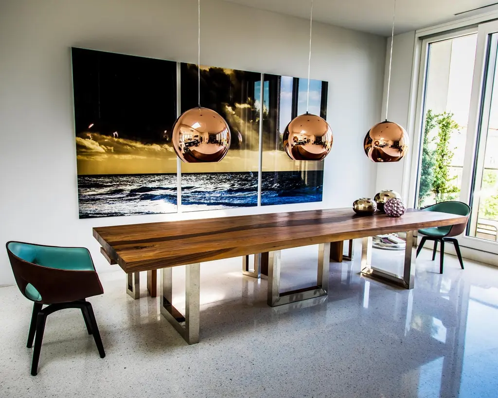 "Il Pezzo 6 Long Table" Length 300cm/118” - Solid Walnut And Ash - Nickel Base