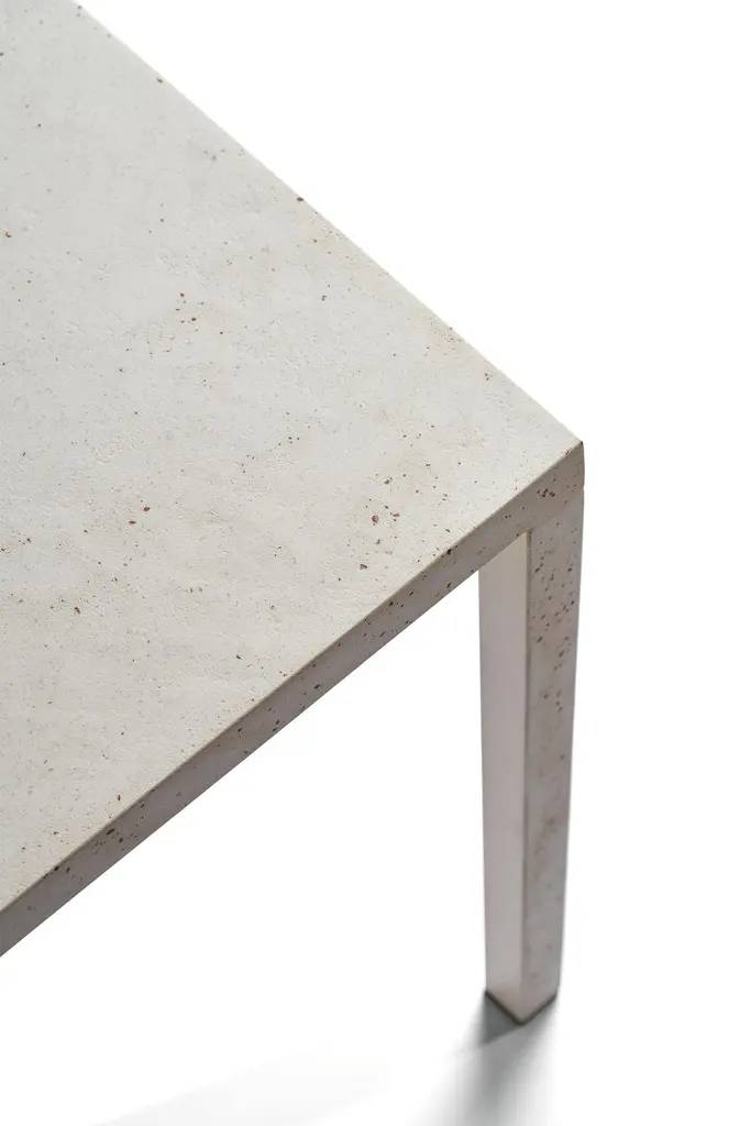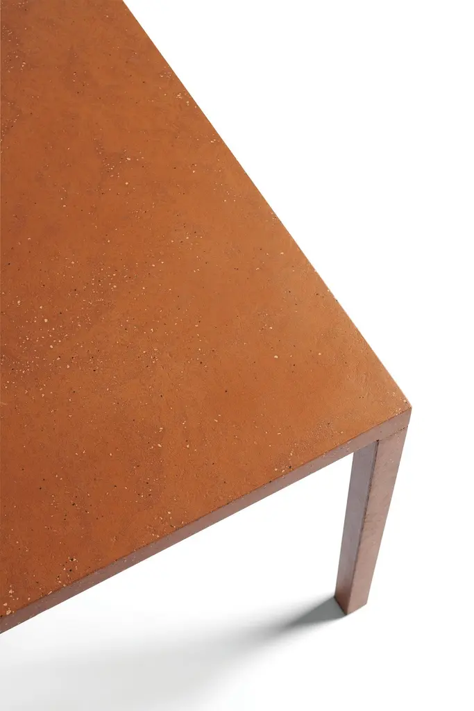A table that keeps up with the times, that is much more than an evolution, because it is the result of a process made up of listening, research, and study. This project has been strongly desired by Lapo Ciatti and his team, who wanted to design a product that is adaptable, flexible, and 100% sustainable, offering a concrete response to new needs.With essential lines like its predecessor ILtavolo, ILtavolo 2.0 stands out for being entirely made in aluminium, a feature that makes it not only lightweight and suitable for indoor and outdoor use, but above all fully recyclable.Opinion Ciatti’s increasing attention to sustainability is also reflected in the choice of the finishes. Alongside the classic white, the sophisticated gold leaf, and the new gold and silver metallic paints, ILtavolo 2.0 also comes in a new special cocciopesto effect, a coating that is a tribute to the colours of Tuscany’s landscapes and, on the other hand, an expression of research and innovation.Known since the time of the Phoenicians and improved by the Romans – who used it as a waterproofing material – the traditional cocciopesto mix is made up of fragments of tiles and bricks combined with lime-based mortar, and is still widely used today as a coating both for indoor and outdoor floors and walls in damp environments.In its 2.0 version, used for the new table by Opinion Ciatti, cocciopesto becomes a special ecological microbiotic-based mortar. The mixture – composed of noble polymers, quartz sands, and calcium carbonate – is enriched with microorganisms, widely used in organic farming for their antioxidant properties, which improve compactness and resistance to impacts and abrasions. The resulting material is fireproof, waterproof and free of resins, lime, plaster, and cement. The processing is water-based and without the use of chemical solvents, so it allows the complete reuse or recycling of all its components.Eco-friendly and with a minimalist design, ILtavolo 2.0 stands out also for its functionality. A measure of this is the optional set of wheels that can be applied to two of the four legs, making it easily movable within the environment.A nomadic table that meets the new furnishing needs of both residential and contract spaces.A versatile product that can adapt to the ever-changing needs of contemporary projects.Matt finishes: textured with cocciopesto and cocciobianco effect. White RAL classic 9016.Metallic finishes: silver, gold.Glossy finishes: gold leaf.Accessories: version with two aluminium wheels that facilitate movement. The wheels are equipped with black rubber O-rings that make them suitable for any type of flooring and avoid scratches. Aluminium grommets.