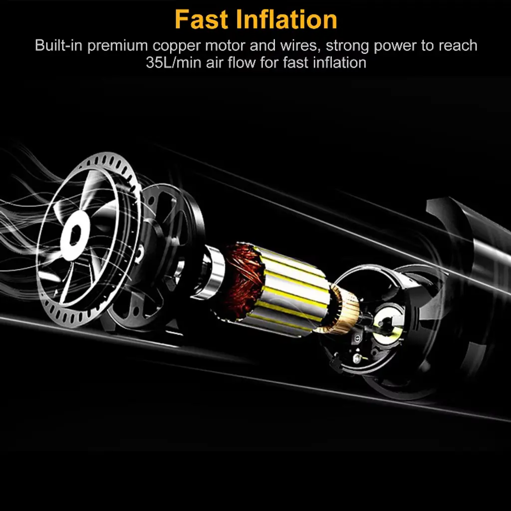 iMounTEK 12V Portable Car Tire Inflator Pump with 150PSI, Pressure Gauge, and 3 Nozzles This powerful 12V portable air compressor is designed to quickly inflate car, motorcycle, bicycle tires, and more. Equipped with a high-quality copper motor, it delivers a maximum pressure of 150PSI and an airflow rate of 35L/min for fast inflation. The easy-to-read pointer display ensures you can monitor the tire pressure, and when the pointer reaches the desired level, simply turn off the switch. Key Features: Fast Inflation: With a premium copper motor and a maximum pressure of 150PSI, the pump inflates tires quickly, reaching up to 35L/min. Pointer Display: The built-in pressure gauge displays tire inflation levels, allowing you to easily monitor and stop when the desired pressure is reached. Versatile Use: Includes 3 free nozzles that fit various valve types, making it perfect for inflating car tires, motorcycles, bicycles, kayaks, and sports balls. Simple Operation: Just plug the 12V connector into your vehicle’s cigarette lighter socket, attach the hose to the tire valve, and press the switch to start inflation. Compact & Portable: The space-saving design features storage grooves for the air hose and power cord, making it easy to store and carry. Specifications: Brand: iMounTEK Power: 60W Working Voltage: DC 12V Maximum Pressure: 150PSI Air Flow Rate: 35L/min Continuous Inflation Time: 8 minutes Dimensions: 16.5 x 12.5 x 6 cm (6.5 x 5 x 2.36 in) Hose Length: 42 cm (16.53 in) Power Cord Length: 3 m (10 ft) Item Weight: 598g (1.3 lbs) Package Includes: 1 x Car Air Tire Inflator Pump 3 x Inflator Nozzles 1 x User Manual