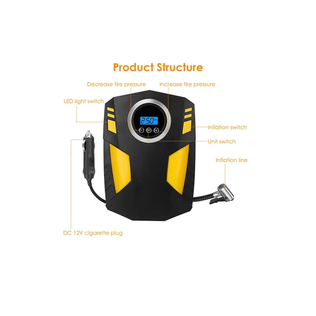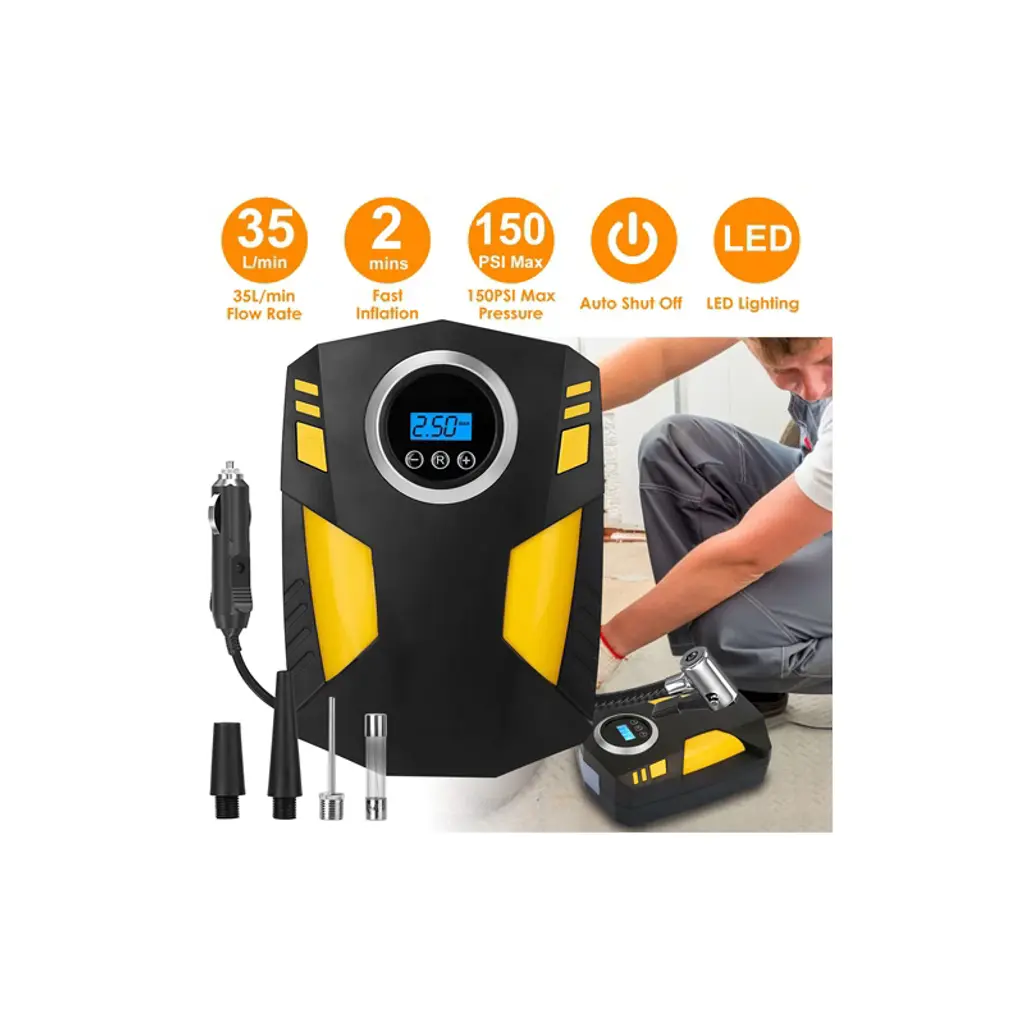 The Portable 12V Car Tire Inflator is a must-have tool for quick and easy tire inflation on the go. Designed for convenience, this inflator is powered by your vehicle's DC 12V socket, making it ideal for roadside emergencies. Simply start your car, connect the nozzle to the tire, set the desired pressure, and switch it on. The inflator will automatically shut off once the set pressure is reached, ensuring you never overinflate. With a maximum pressure of 150PSI and an air flow rate of 35L/min, this inflator can fully inflate a flat tire in just 2-5 minutes. It can run continuously for up to 10 minutes, so you don’t have to worry about frequent cooling down during use. The digital display allows you to easily monitor the tire pressure and preset your desired inflation level. Plus, the LED light ensures easy operation, even in low-light conditions. Compact and portable, the inflator measures just 5.8 x 8 x 2.2 inches and can be conveniently stored in your car without taking up much space. The 9.8ft charging cord offers plenty of reach, allowing you to inflate all four tires with ease. It comes with 3 air nozzles, making it versatile enough to inflate bicycle tires, sports balls, pool toys, air mattresses, and more. Note: This inflator is suitable for use with cars and SUVs, but not for trucks or vans. It’s limited to a DC 12V power supply. Specifications: Brand: iMounTEK Power: 120W, DC 12V Maximum Pressure: 150PSI Inflation Time: 2-5 minutes per tire Continuous Work Time: 10 minutes Digital Display: High-precision for easy monitoring LED Light: For use in low light conditions Air Flow: 35L/min Inflatable Tube Length: 60cm (23.6in) Charging Cable Length: 3m (9.8ft) Inflator Size: 5.8 x 8 x 2.2 inches Inflator Weight: 1.56lbs Package Includes: 1 x Portable Car Tire Inflator 3 x Air Nozzles 1 x Fuse 1 x User Manual