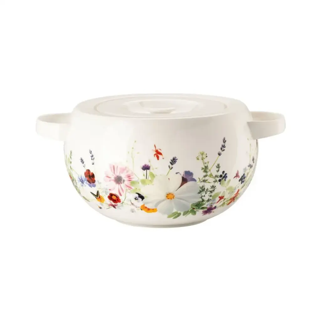 The series IMPRESSION is a cheerful, bright design with water color blossoms looking like hand-painted. Each article is individually decorated. The combination of the various blossoms creates a vivacious image reminding of a colorfully arranged bouquet or a meadow.