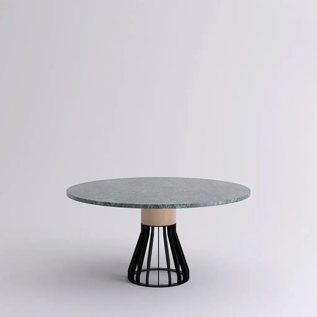 Indian Green Marble "Mewoma" dinner table, Jonah Takagi Dimensions: 150 diameter x 74 height cm Materials: Indian Green marble, metal, wood Different finishes and sizes are available. This piece is attributed to the mentioned designer/maker. It has no attribution mark and no official proof of authenticity, however it is well documented in design history. I take full responsibility for any authenticity issues arising from misattribution