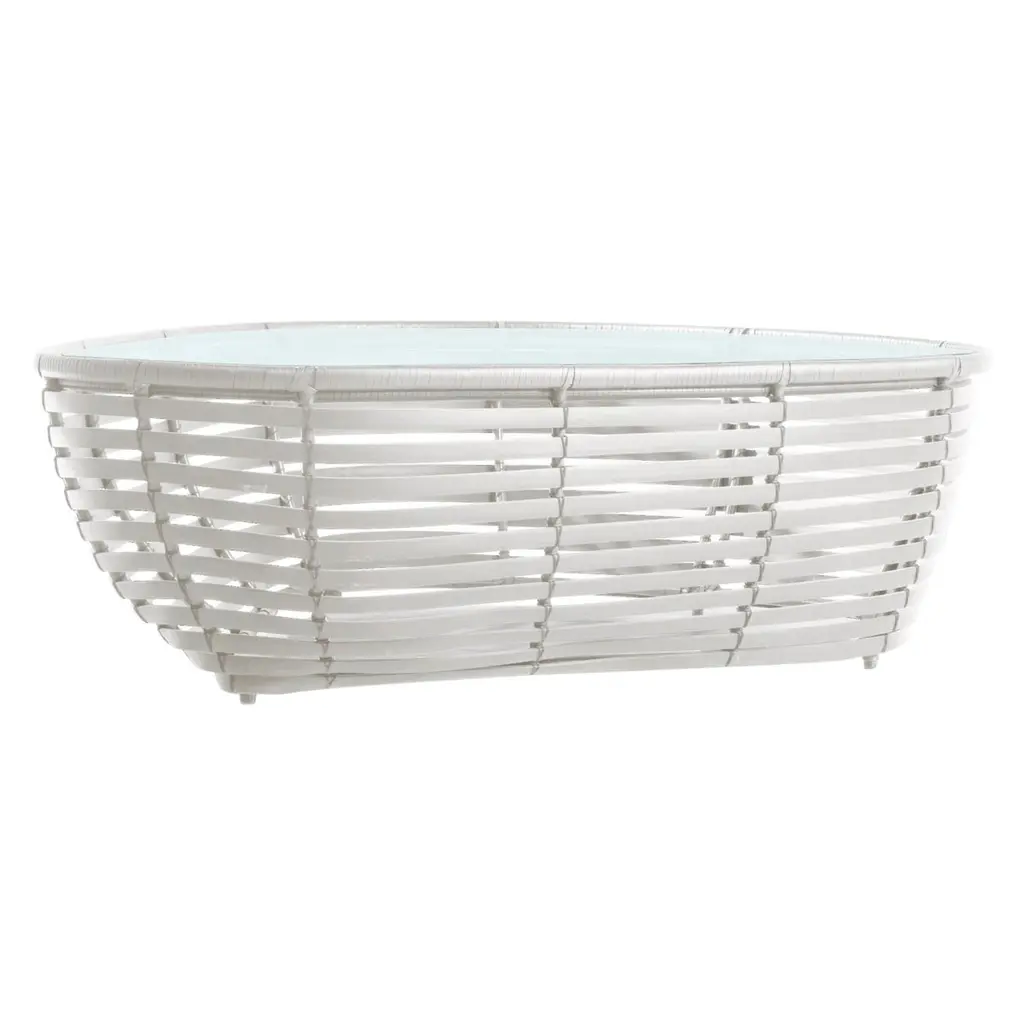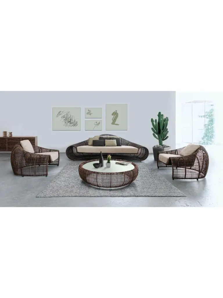 Croissant coffee table by Kenneth CobonpueMaterials: Abacca, nylon, steel. Glass. Dimensions: Table diameter 138.5 cm x height 35cm Glass diameter 119.5 x height 10mm. The distinctive shape of the Croissant makes it a structural beauty. Made of abaca or polyethylene over a hand-sculpted and powder-coated steel frame, this collection promises a well-deserved respite with its low, wide arms and soft edges.Also available in other sizes and colors.Designer's BiographyKenneth Cobonpue is a multi-awarded furniture designer and manufacturer from Cebu, Philippines. His passage to design began in 1987, studying Industrial Design at the Pratt Institute in New York. While completing his studies, he apprenticed for a leather and wood workshop near Florence, Italy. He went on to study Furniture Marketing and Production at the Export-Akademie Baden-Württemberg in Reutlingen, Germany, under a private and state scholarship program, and subsequently worked in Bielefeld and Munich.Kenneth returned home to Cebu in 1996 to manage Interior Crafts of the Islands, Inc., a furniture design and manufacturing company founded by his mother Betty Cobonpue in 1972. Discovering that modern design could have a new face using natural fibers and materials, Kenneth created pieces of functional art, offering an alternative to the Western definition of modern design. Today, the Kennethcobonpue brand has become known globally for its unique designs and extensive roster of clientele, including Hollywood celebrities and members of royalty.With his masterful way of integrating nature, traditional craft and innovative technologies, designer and creative director Kenneth Cobonpue has earned international awards and recognition for his creative, organic, and expressive pieces. Working closely with some of the world’s leading designers, from household names to emerging talents, Kenneth has been pushing the envelope for design in the Philippines and sharing his vision to a global audience. Awards to his credit include five Japan Good Design Awards, the grand prize at Singapore International Design Competition, the Design for Asia Award of Hong Kong, the American Society of Interior Design Top Pick selection and the French Coup de Coeur award. Several of his designs were selected for several editions of the International Design Yearbook published in London and New York. Phaidon’s book entitled “& FORK” underscores Kenneth’s position as a leader of a new movement incorporating new technologies with crafts. In 2007, TIME magazine called him “rattan’s first virtuoso”. Kenneth was named the Designer of the Year in the first edition of Maison et Objet Asia held in March 2014 in Singapore.Kenneth reveals new work each year in the design shows from Milan to New York, and he speaks regularly about Southeast Asian design all over the world. He has also appeared in European television and in countless international magazines and newspapers around the world. Various Cobonpue designs have also appeared in full-length feature films and television, such as Oceans 13 and CSI.