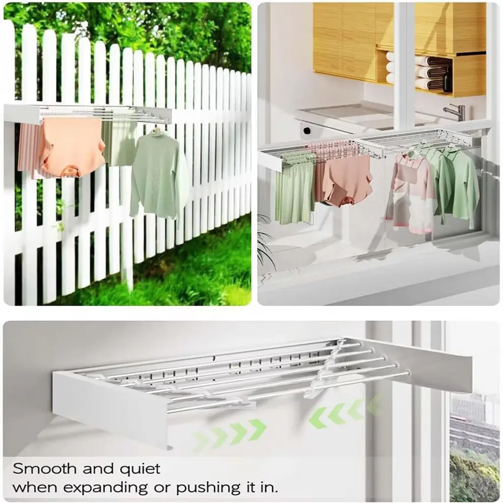 Indoor Wall Mounted Folding Clothes Drying Rack, Foldable Laundry Drying Rack, Collapsible Invisible Space Saving Retractable Towel, 80cm 5 Poles