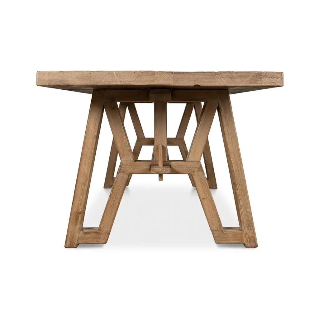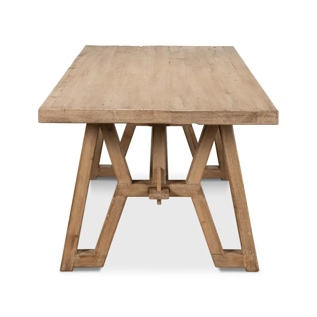 A perfect blend of rugged charm and contemporary design. Crafted from old pine beams and planks, this table not only boasts a rich history but also showcases a beautiful natural finish that enhances the unique character of the reclaimed wood.Dimensions: 98" W x 39" D x 30" H