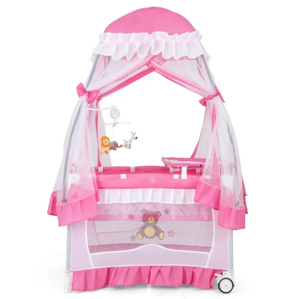 Infans 4 In 1 Baby Playard Portable Infant Nursery Center W/ Zippered Door Colorful