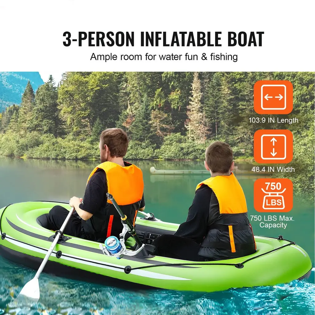 Inflatable Boat, Inflatable Fishing Boat, Strong Pvc Portable Boat Raft Kayak, 45.6" Aluminum Oars, High-Output Pump - 3-Person