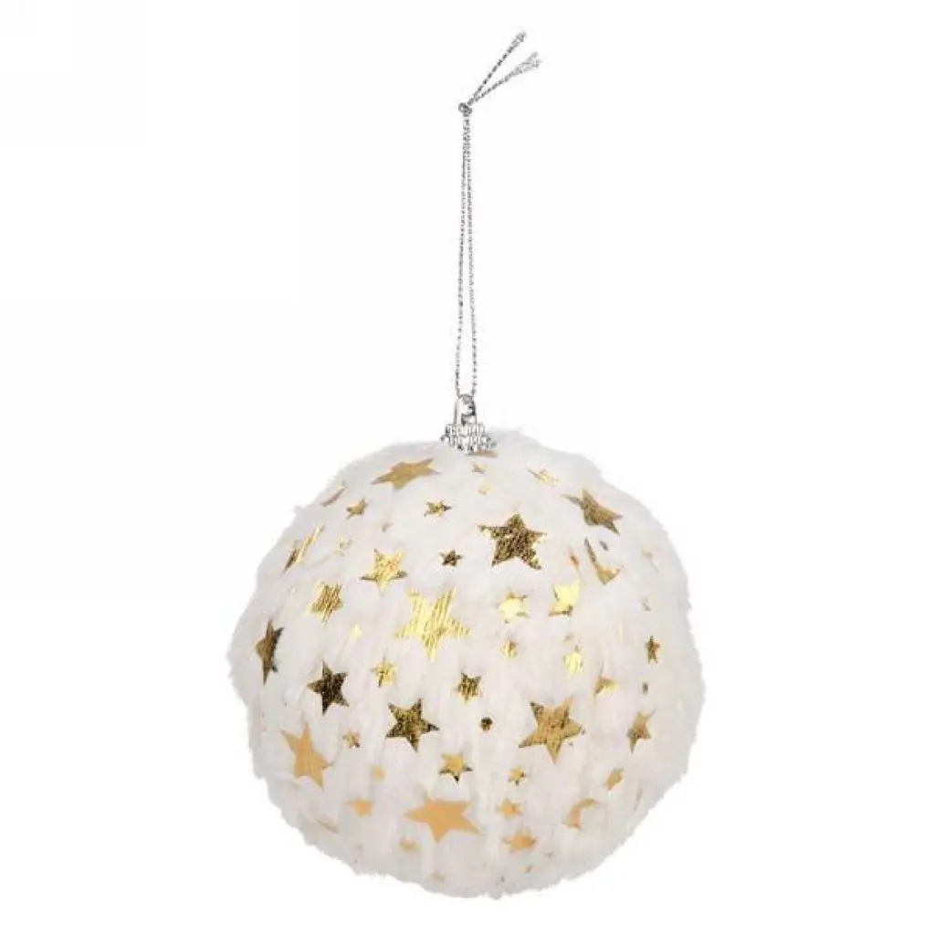 Take a load off this holiday season and let the decorations do the work. This white inflatable ball ornament will make this year's decoration a breeze. The shimmering effect is perfect for adding a bit of sparkle to your outdoor holiday decor. Add a string of lights to create a unique decoration. Product Features: inflatable ball Christmas decoration Vinyl ball covered in a stretchy tinsel covered fabric Inflates and deflates for easy set up and storage Comes ready to hang on a matching cord Requires pump to inflate - not included Perfect for indoor and outdoor use Not a toy recommended for decorative purposes only Dimensions: 23.5" in diameter Material(s): vinyl/fabric/tinsel Note: Inflatable ball inside of the decoration is heavy-duty vinyl like an exercise ball and requires a lot of air. We recommend that you use an air compressor or electrical pump to inflate to the maximum circumference.