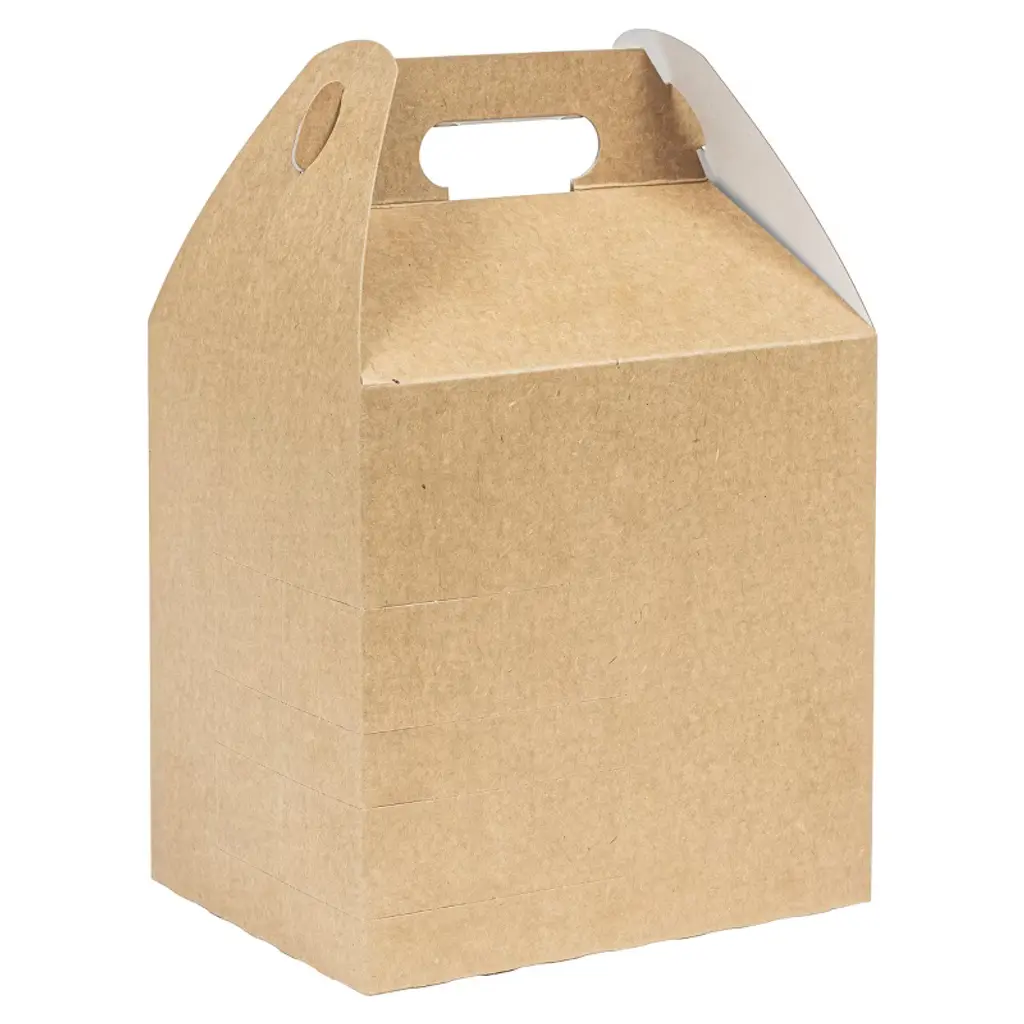 This Brown Kraft Fold-out Box with Handles is a sturdy and sustainable solution for takeout and food on-the-go. Made from paper board, this tall carry pack is commercially compostable and recyclable where accepted. Featuring easy assembly with a barn top automatic bottom, the microwave-safe box is ideal for delivery, takeout, or boxed lunches. The product dimensions are 8" (Length) x 6" (Width) x 8" (Height), and it is available in a case of 100 boxes. No PFAS added.