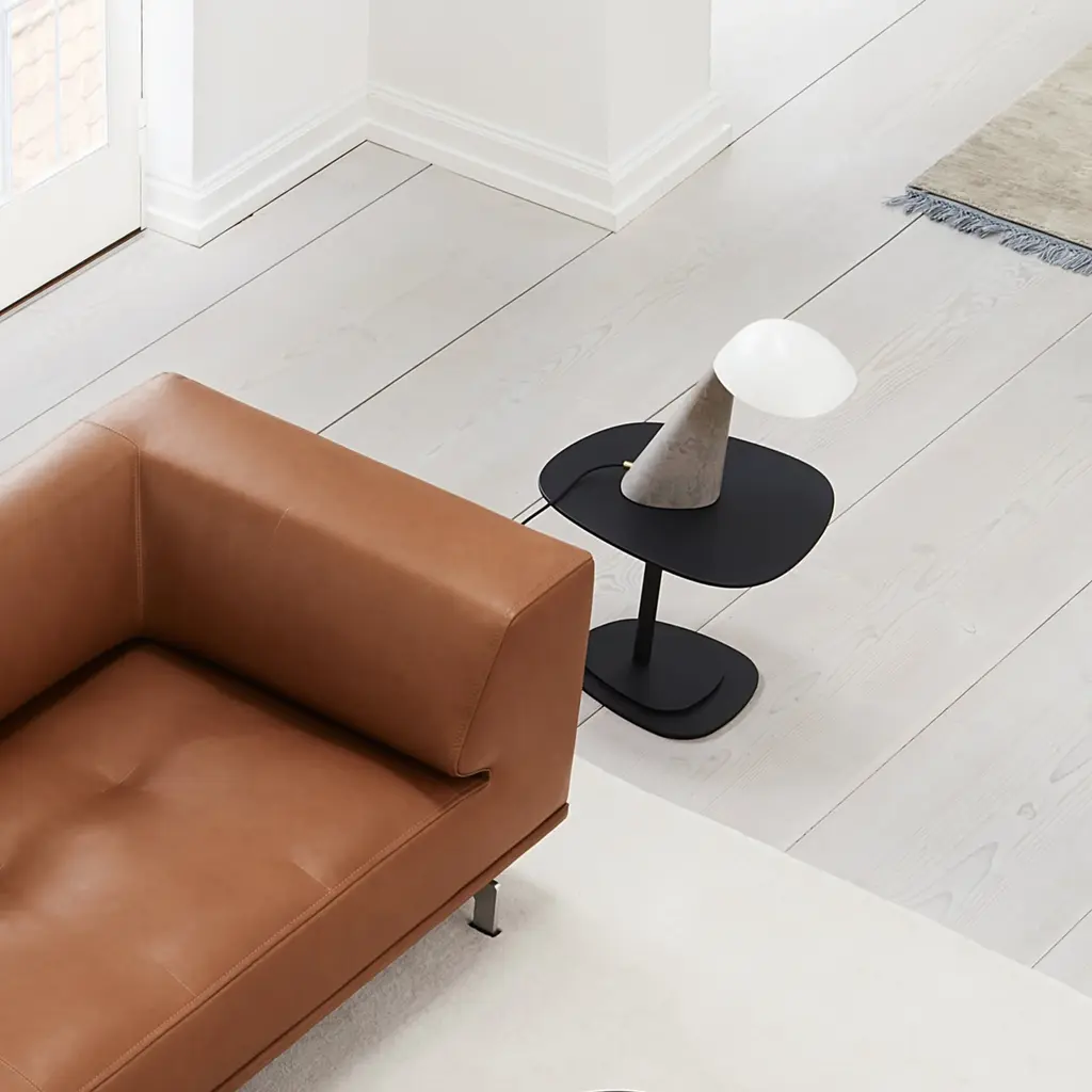 Like a small island, Picolo’s organically shaped tabletop has a floating appearance, in contrast to its sharp and angular base. Everything is asymmetrical in Ernst & Jensen’s design, with the powder-lacquered aluminum base and matching top in monochromatic black. Equally striking as a stand-alone or clustered together in a mix of the table’s 2 available heights to form a roomscape archipelago, the table offers convenience as well as an unexpected playful element.