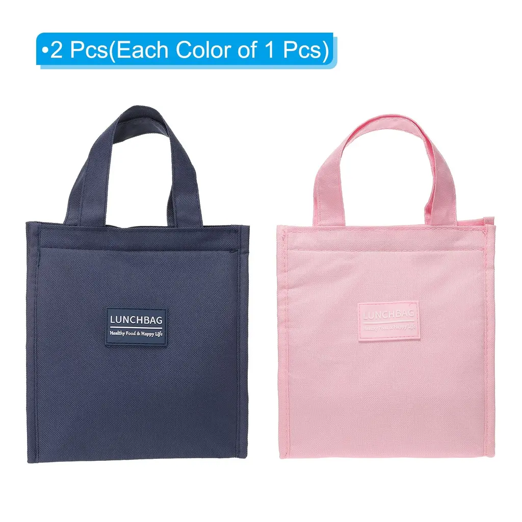 Insulated Lunch Bags, 2Pack 8"x5"x9" Portable Containers Bag - Dark Blue,pink