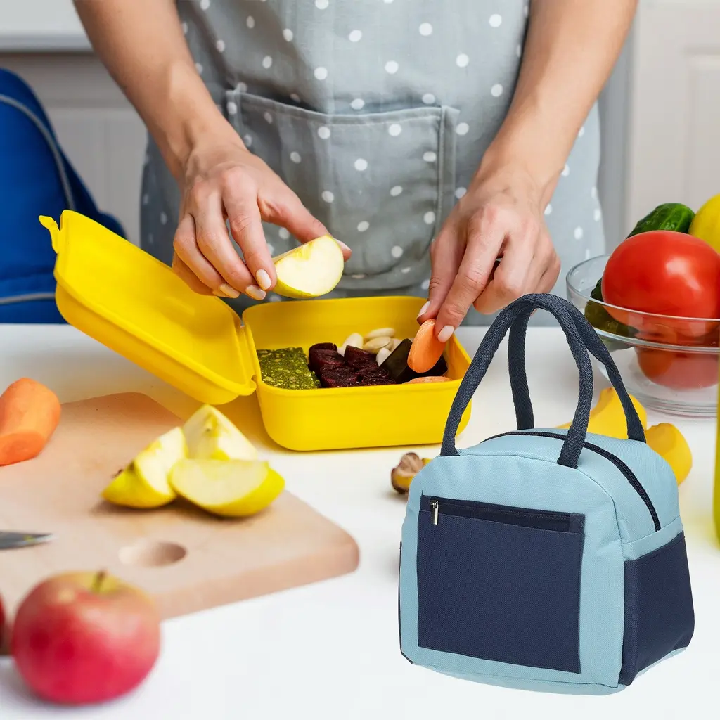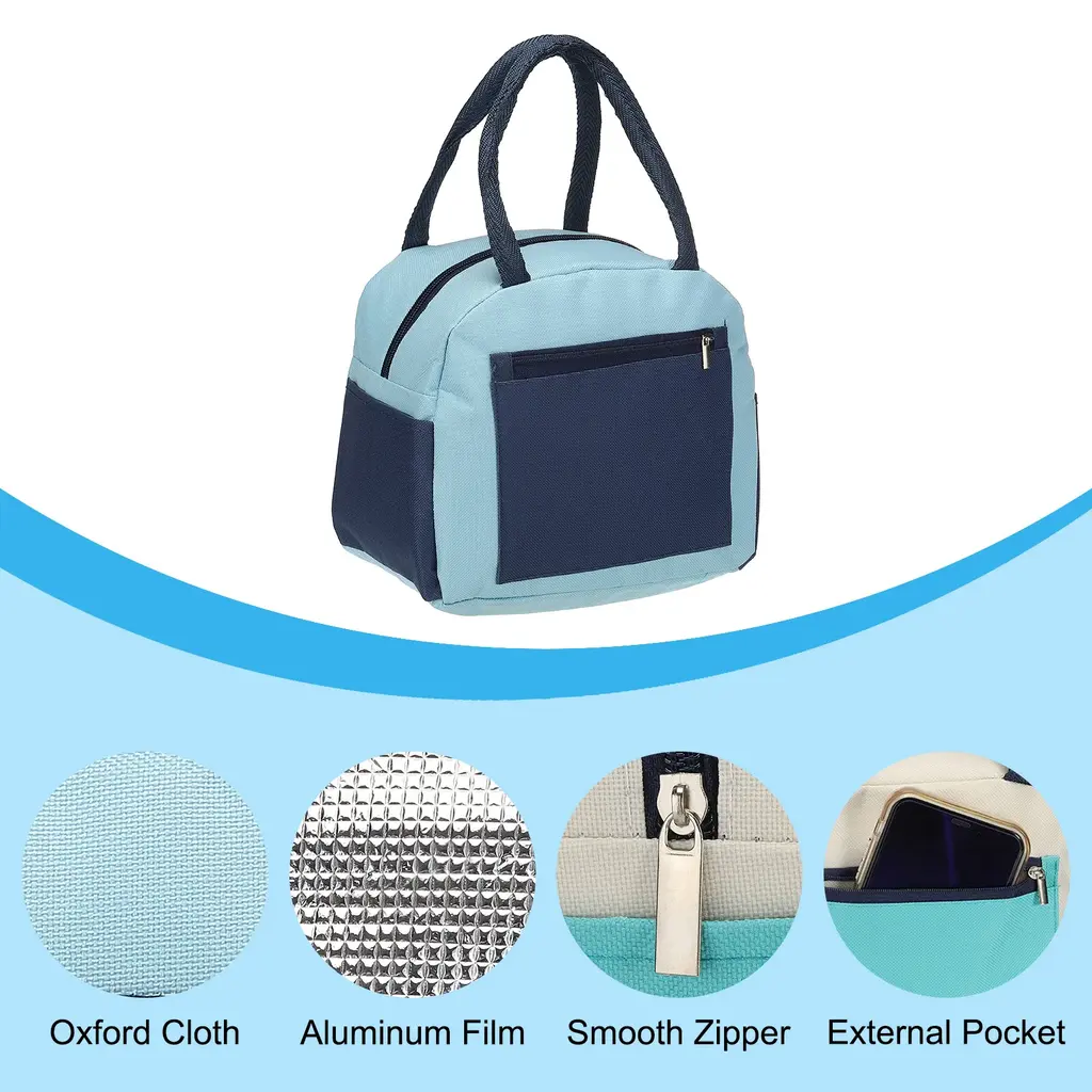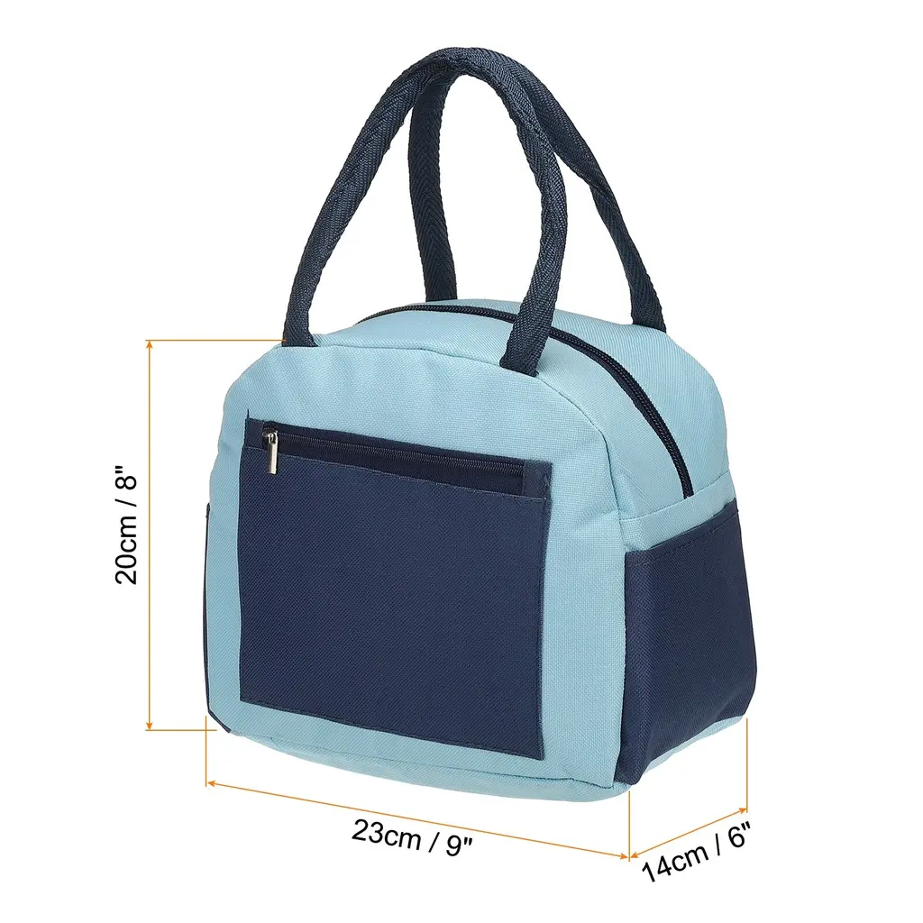 The insulated lunch bag is very suitable for office workers, outdoor workers, personnel, etc. to store lunch boxes, sandwiches, snacks, stew cups, bowls, etc., and can also be used for outdoor activities such as picnics and camping.SpecificationColor: Blue, Dark BlueMaterial: Oxford Cloth, Aluminum FoilSize: 23 x 14 x 20 cm / 9 x 6 x 8 inch (L*W*H)Packing List: 1pcs x Insulated Lunch BagAdvantageThe lunch bag is made of waterproof Oxford cloth and an aluminum foil insert, which is durable and tear-resistant. The interior is equipped with thermal insulation cotton and aluminum foil to avoid heat and effectively keep warm and cold.Zipper on both sides, easy to open and close. Equipped with a hand strap, it has a strong bearing capacity and is easy to carry.InstructionThe insulated lunch bag is lightweight and portable, and fits easily in a backpack or tote, making it perfect for storing food on the go.NOTE: Please make sure the size is correct before placing an order.