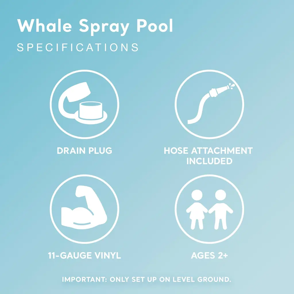 Add a little splash to your backyard this summer with a kids pool that's extra fun and refreshing. The Intex Inflatable Whale Spray Kiddie Pool isn't just a pool for kids, it's practically a mini water park. All you have to do is hook up a standard garden hose to the kiddie pool and the water spout in the whale's tail will start spraying. It's perfect for those extra hot summer days. Measuring 79 inches long, 77 inches wide, and 36 inches high, this kid's pool is perfect for children 2+ learning to swim for the first time because it exposes them to the water in a safe environment with mom and dad. This particular whale spray pool holds 53 gallons, but still has plenty of space for both a parent and 2 kiddos. This Whale Spray Pool is the perfect summer oasis for young kids ages 2+ learning to swim This inflatable kids pool measures 79 inches long, 77 inches wide, and 36 inches high Holds 53 gallons of water and can hold an adult and 2 kids at once Connects to a regular garden hose to activate the refreshing water sprayer spout in the whale's tail Constructed with tough 11-gauge vinyl Includes a drain plug so draining the pool creates less of a mess Includes a repair patch Color: Blue For ages 2 and up Dimensions (L x W x H): 79 x 77 x 36 inches