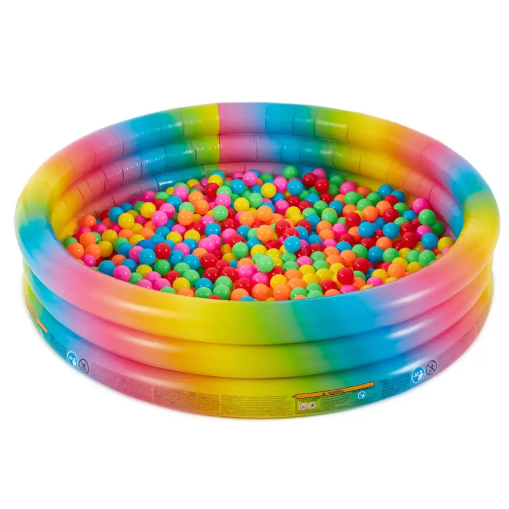 Intex 58449ep Rainbow Ombre 3 Ring Round Inflatable Kids Outdoor Swimming Pool With Small Plastic Multi-colored Fun Ballz For Ball Pit, 100 Pack
