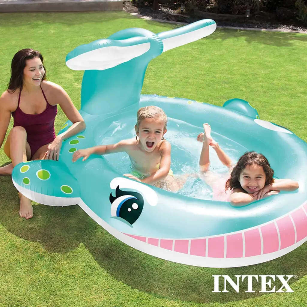 Intex Inflatable Whale Kiddie Pool: Built-in Water Sprayer – Convienient Drain Plug – Durable Vinyl – 79" X 77" X 36" – Ages 3+