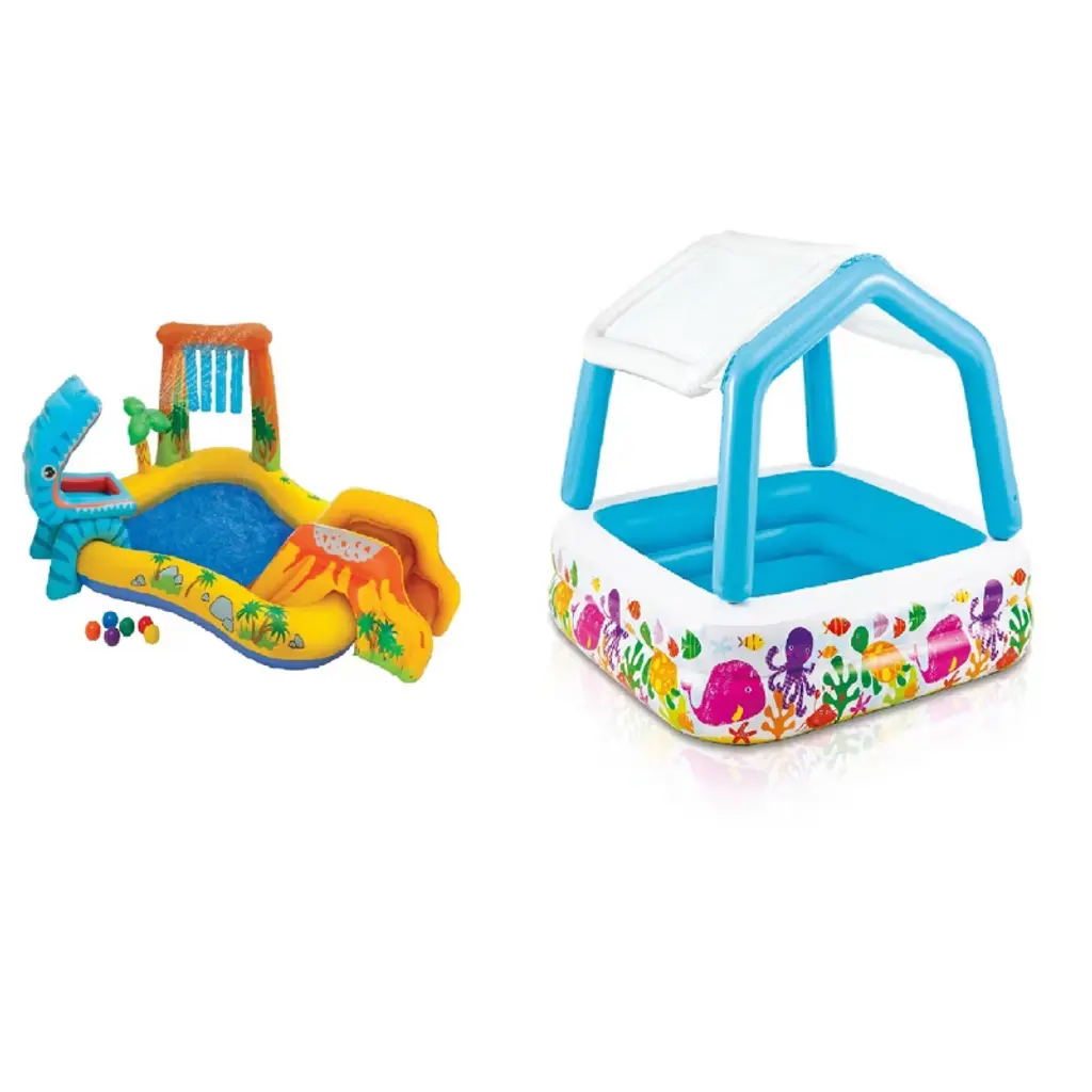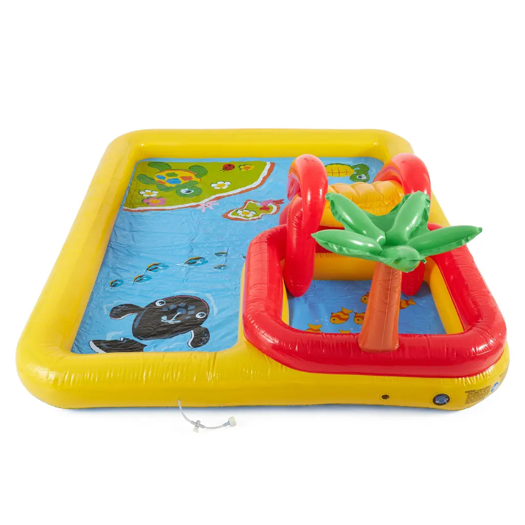 The INTEX Whale Spray Pool is a great way to get the little ones ready for the water. Designed with the friendliest whale you ever did see. Bring on the warm summer days and all the smiles splashing around featuring a whale tail sprayer to keep cool. Simply connect a garden-hose to the built-in sprayer spout and watch the fun begin. Designed for ages 2+ and approximate inflated size 79in x 77in x 36in.