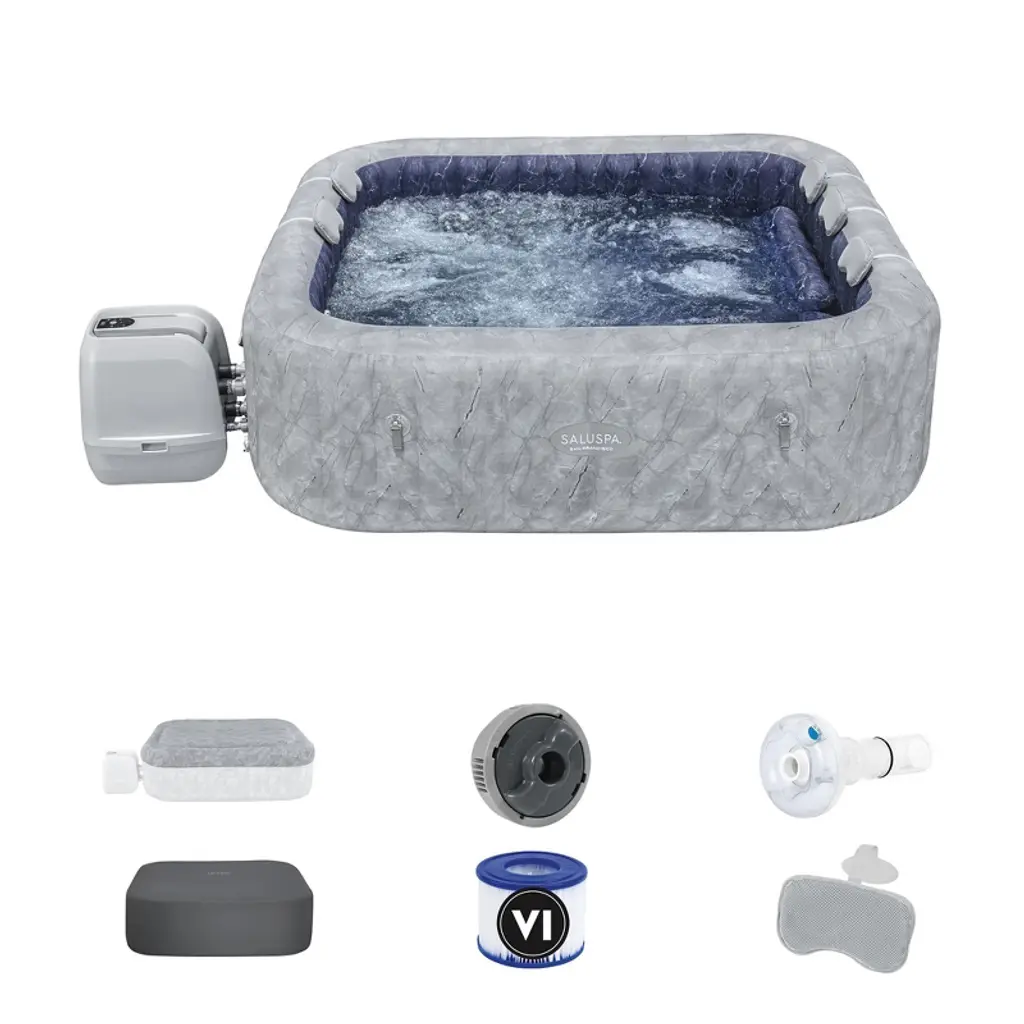 Let your worries bubble away as you unwind in the Intex PureSpa Plus Portable Inflatable Hot Tub Jet Spa with 12 Filter Cartridges. The PureSpa provides relaxation at the touch of a button for up to 6 people with its easy-to-use control panel that activates 170 high-powered bubble jets surrounding the interior of the spa for a refreshing massage. The heating system adjusts to fit your personal temperature preference, allowing for a stress-free spa experience. The package includes a tub, insulated cover, heating/filtration/air blower/hard water system, color-changing LED light, 2 filter cartridges, 2 headrests, thermal ground cloth, inflation hose, carry bag, floating chlorine dispenser, and test strip. This bundle comes with 12 filter replacements cartridges. This is the authentic replacement cartridge for your Intex PureSpa. It works with all Intex PureSpas models including 28403E, 28407E, 28443E, 28453E, 28421E, 28423E, 28413E, and 28453E. Replace your filter cartridges regularly for the best results. It is recommended that you replace cartridges every 2 weeks to maximize your spa performance. Relax and unwind with the Intex PureSpa Plus Portable Inflatable Hot Tub Jet Spa with 12 Filter Cartridges. The 6-person portable and inflatable hot tub spa lets you relax in style at the touch of a button Pampering yourself is easier than ever with 170 soothing high-powered jets and water temperatures up to 104 degrees Fahrenheit Powerful and useful cartridge filter 12-pack keeps your PureSpa Jet Massage water clear and fresh, making for a more relaxing spa experience Easy-to-use, tilt-adjustable control panel for customized temperature and comfort Built-in hard water treatment system makes water gentler on your skin, clothes, and the entire spa system Saves on energy with a 50-percent more efficient foam spa cover, protecting the pool from punctures, scratches, and damage Ready for water in about 20-minutes and can be deflated for easy storage or transport Color-changing LED light creates a unique ambiance (requires 3 AAA batteries, not included) Seating capacity: 6 people Water Capacity: 290 Gallons Material: Laminate PVC Color: Cobalt blue Inner dimensions (L x W x H): 65 x 65 x 28 inches Overall dimensions (L x W x H): 85 x 85 x 28 inches Filter dimensions (L x W x H): 4.25 x 4.25 x 2.88 inches Weight: 126 pounds (Spa) Weight: 0.56 pounds (Filter) Manufacturer warranty: 1-year warranty