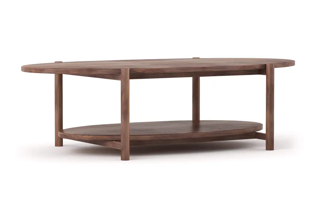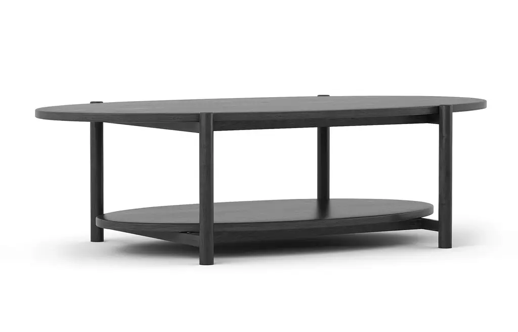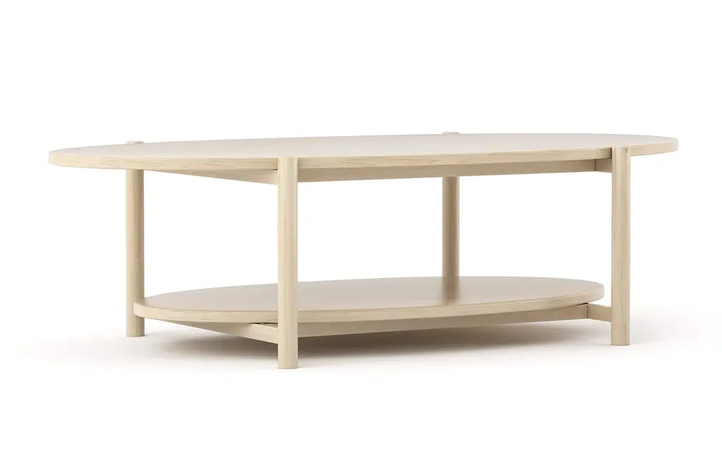 Iris Oval Coffee Table's just-right size supports all your sips and snacks with simple, refined style and cornerless edges (all the smoozing without the bruising!). Its open design and lower shelf let your favorite possessions shine: style with a stack of coffee table books, your favorite ceramic bowl or vase, and voilà!Tops and sides crafted in your choice of beautiful, 100% solid hard White Maple or American Walnut. For additional strength and lightness, FSC-certified, low-VOC CARB 2 compliant Maple or Walnut hardwood plywood is used elsewhere.