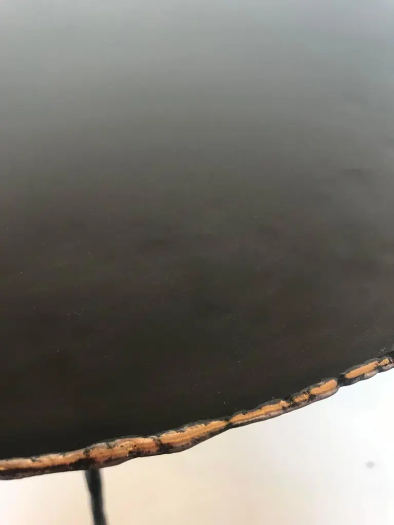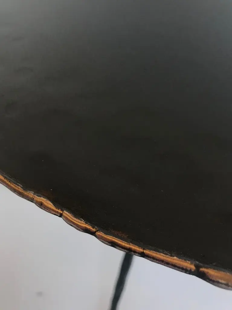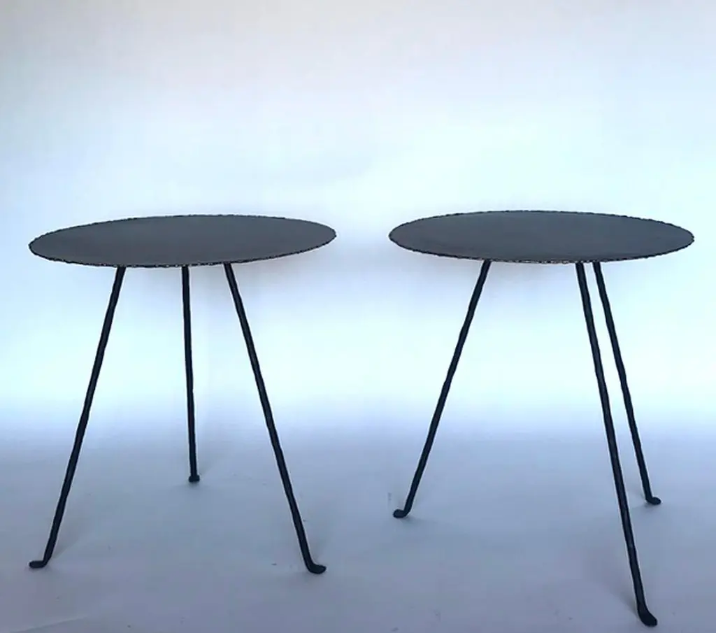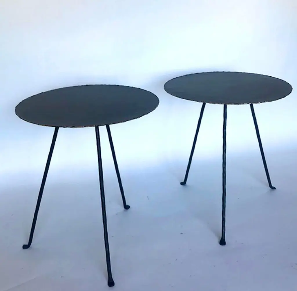 Sold and priced separately. Iron tripod table with a bronze edge. Can be made in custom sizes. Made in Los Angeles by Dos Gallos StudioOne is available off the floor. Custom pieces have an 10-15 week lead time.The lead time is 16 weeks. Please inquiry for specific pricing.CUSTOM PRICES ARE SUBJECT TO CHANGE. PLEASE INQUIRE BEFORE ORDERING. ALL CUSTOM ORDERS ARE NON RETURNABLE. FINAL SALE