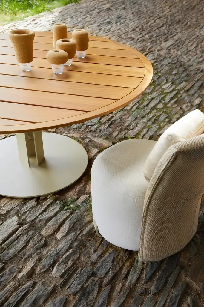 Isla is a designer table made of special outdoor materials. Its frame is made of steel while its top is made of iroko wood, both forming an original, resistant, and elegant piece of outdoor furniture. In addition, it is easily customizable as it is available in various colours created exclusively for the Isla collection.MaterialsPowder-coated galvanized steel (table base)Powder-coated aluminiumIroko wood tabletopPerfectly irregular volumes.ISLA is a versatile and attractive outdoor collection, designed by Sebastian Herkner. In his first collaboration with GAN, the German designer explores the concept of modularity and outdoor living, through comfortable volumes and irregular shapes.Its three modules can be used independently or in combination to generate multiple configurations that adapt to each space, always paired with the collection’s tables and cushions. Enjoy creating your own archipelago.Menorca, Gomera and Arosa, the three modules in ISLA, are offered in seven color combinations: Coral, Sand, Shell, Blue, Green, Silver and Garnet.