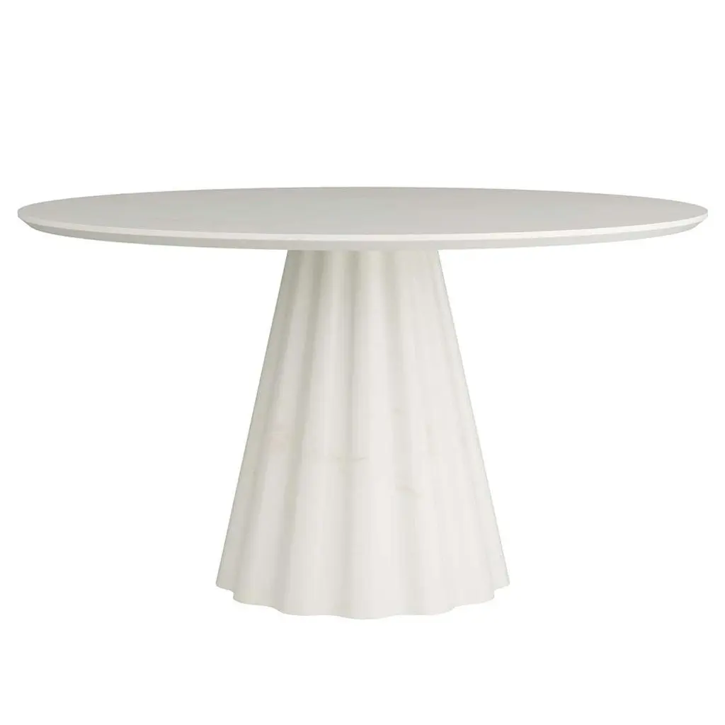 A marble round top is combined with a sculptural base made of three rounded conical supports that give the product a strong three-dimensionality. Combined with Anodo stools, it is ideal for creating a refined, sculptural corner. It is part of the New Atomic Age collection designed by Elena Salmistraro for Scapin Collezioni. Designer and artist Elena Salmistraro takes her inspiration from the historical period between the 1940s and the 1960s.