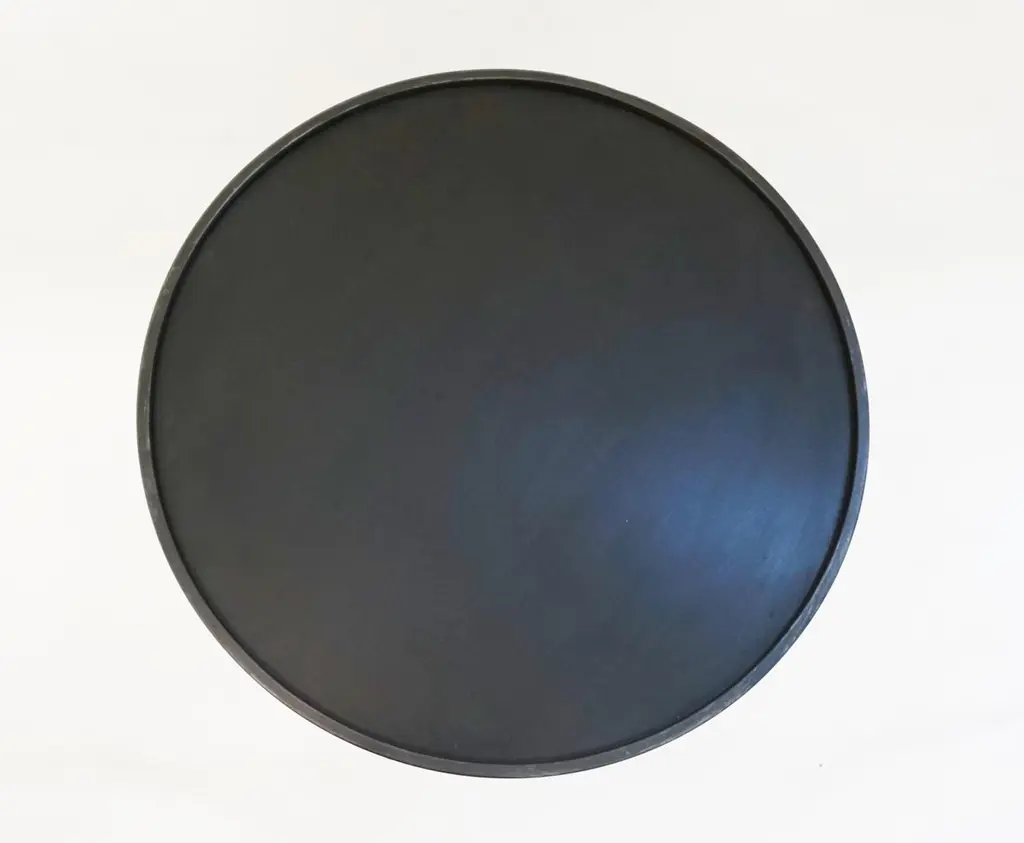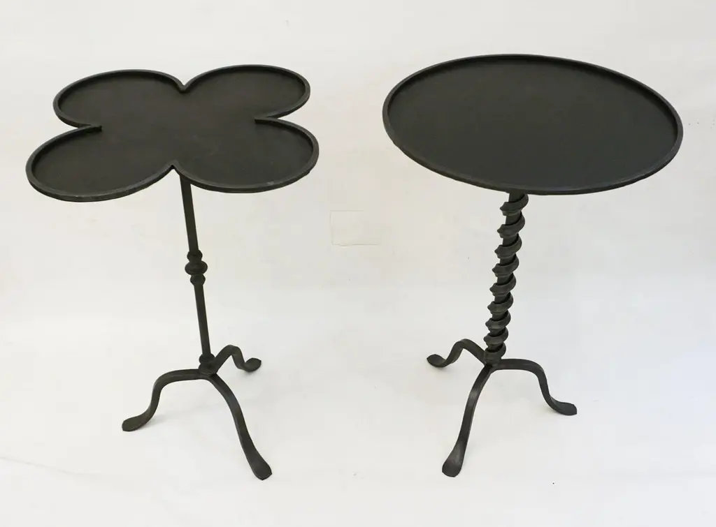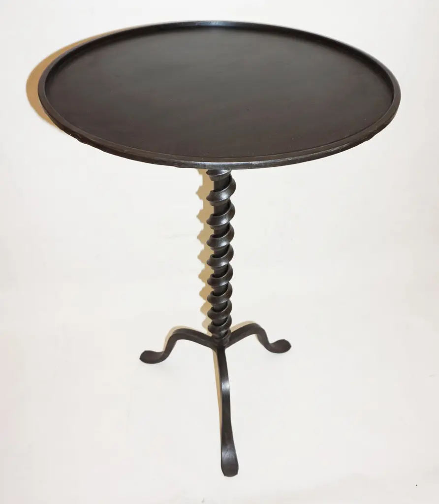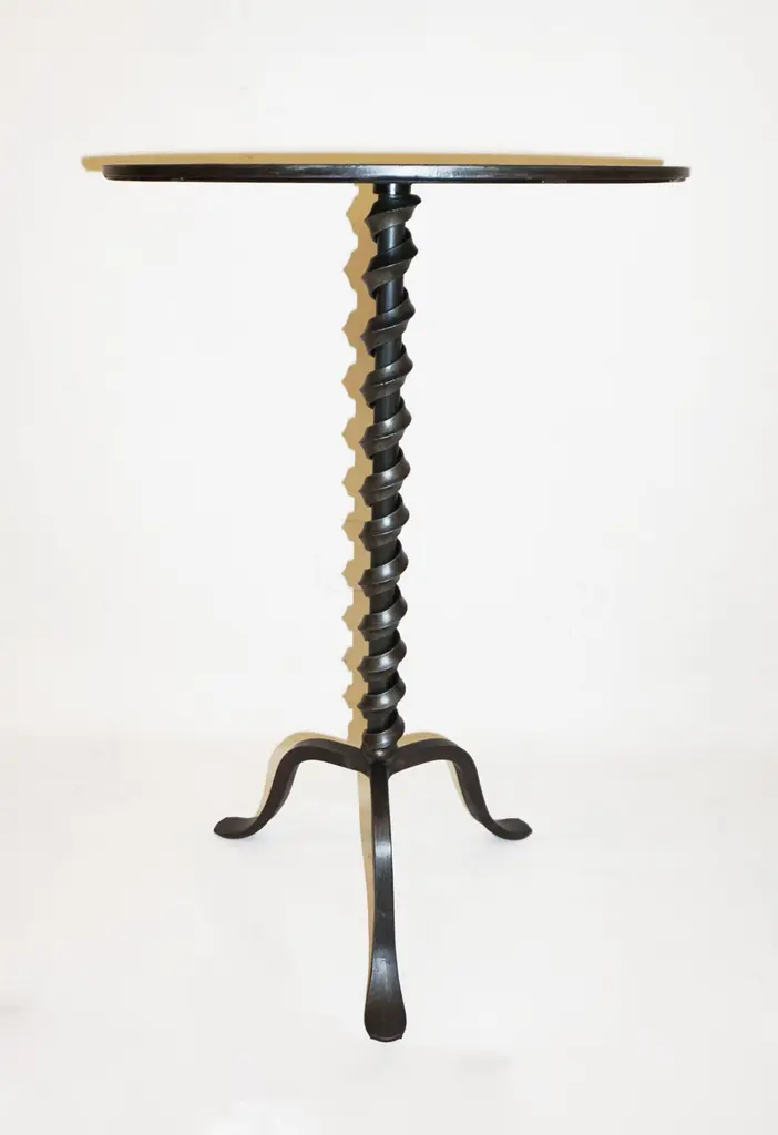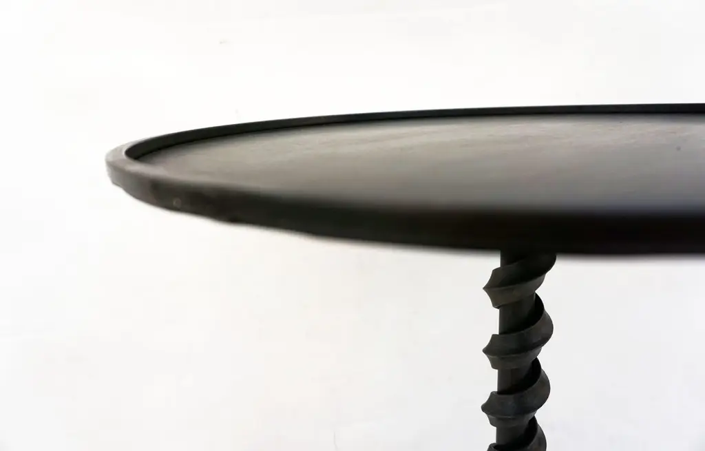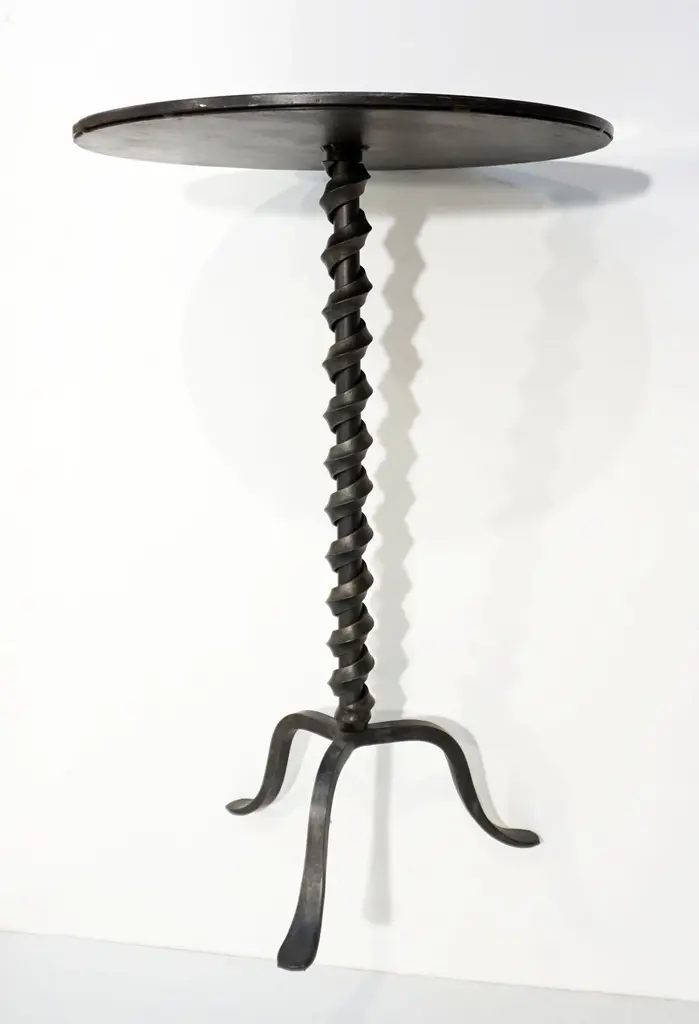 Add fun with color to your environment, outdoor and indoor! This contemporary cast iron side table, entirely handcrafted in Italy, will certainly delight with a glass top customizable in any color of your choice. This organic modern tripod piece presents an artistic side with a twisting motif coming up the central stem and functionality with a raised border to keep in check your drinks and the removable glass top in case the table needs to stay outside under the rain.Contact us with your favorite color!