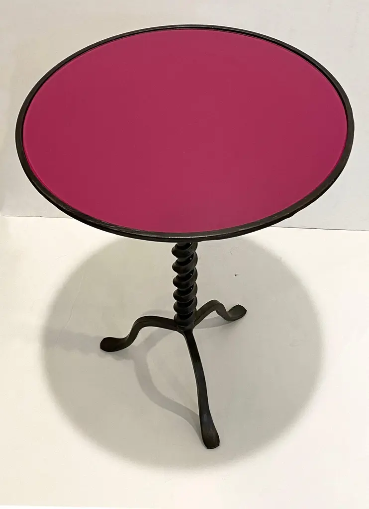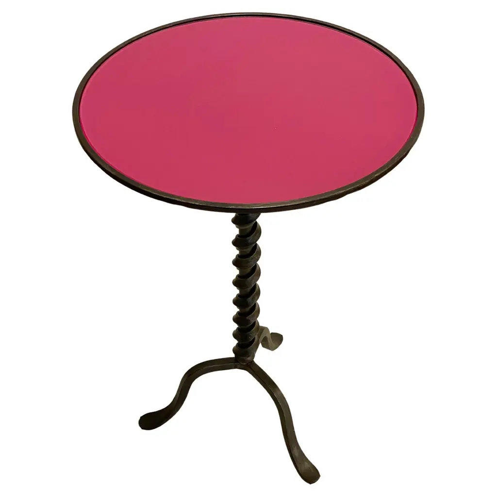 Italian Twisted Cast Iron Customizable Fuchsia Glass Color Side Coffee Table