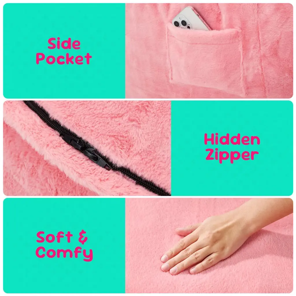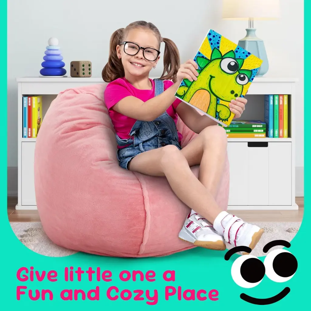 Itopfox Plush Faux Fur Memory Foam Bean Bag Chair For Kids, Comfortable Small Beanbag For Living Room, Bedroom, Playroom In Pink