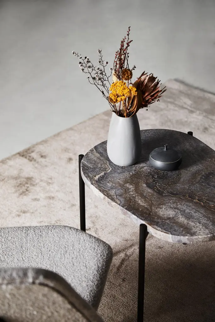 Ivory La Terra medium occasional table by Agnes MorguetMaterials: Metal, Ivory Travertine.Dimensions: D 40.5 x W 57.2 x H 41 cmThe founders, Mia and Torben Koed, decided to put their 30 years of experience into a new project. It was time for a change and a new challenge. The challenge was to build an ambitious design brand from the ground up with high-quality materials and great attention to the little details. With a drive to create new originals, the WOUD collection is founded upon the idea to look ahead instead of looking back and share the love for honest design. Therefore, we are eager to discover and develop new ideas whether it being in form, function or choice of material. Agnes Morguet appears as a flourishing designer from Germany. Her background as a trained carpenter and interior architect combines craftsmanship, art and aesthetics, resulting in designs that enrich atmospheres and arouse emotions. With an aim to inspire, delight and touch people emotionally, her creations are characterised as clear, elegant and natural. Her approach to the design process is holistic, which reveals in her ability to find inspiration in everything that surrounds her.