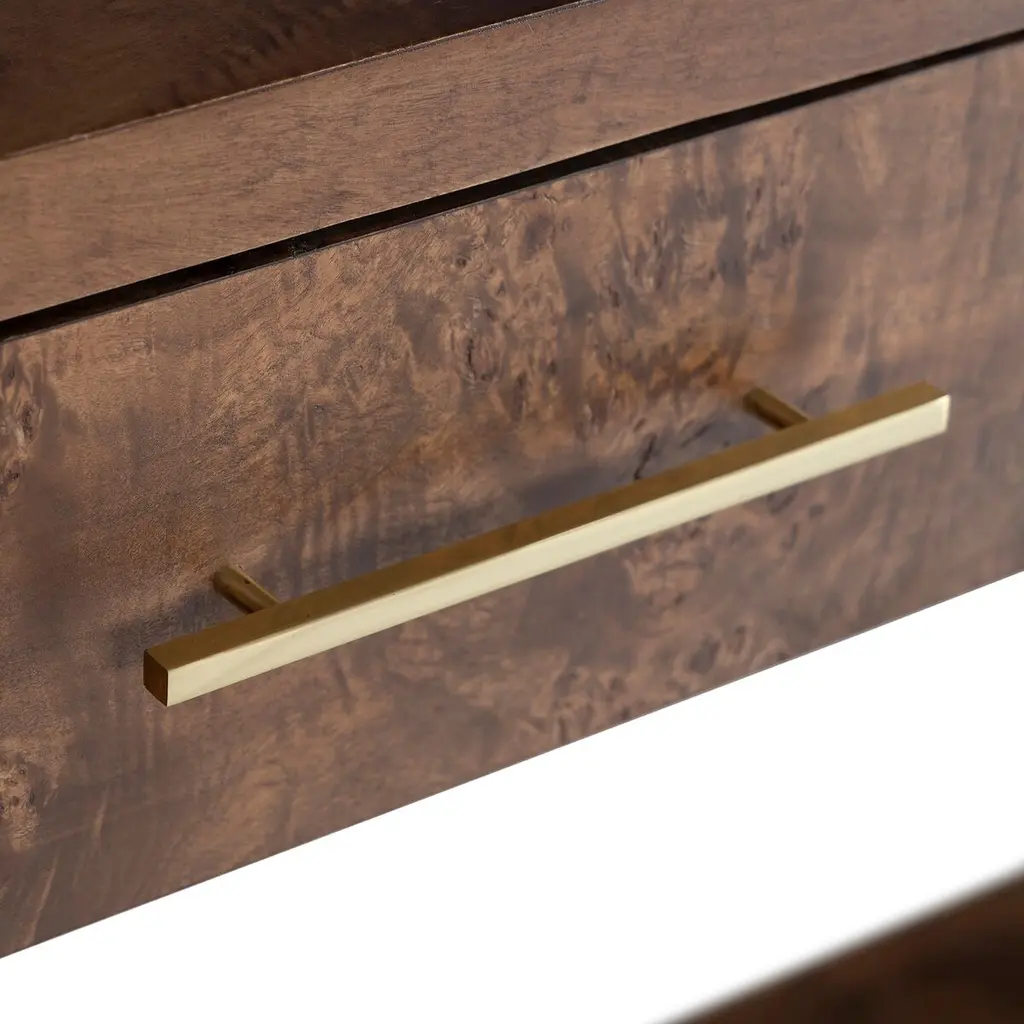 Introducing the Jackson Burl Console Table – a seamless fusion of artistry and functionality. Crafted from the captivating Mappa Burl, this console table is a testament to the beauty of nature's details. Available in both light and dark finishes, the Jackson Burl Console effortlessly blends organic charm with modern design. Elevate your entryway or living space with this exquisite piece, a celebration of the raw elegance found in every grain.