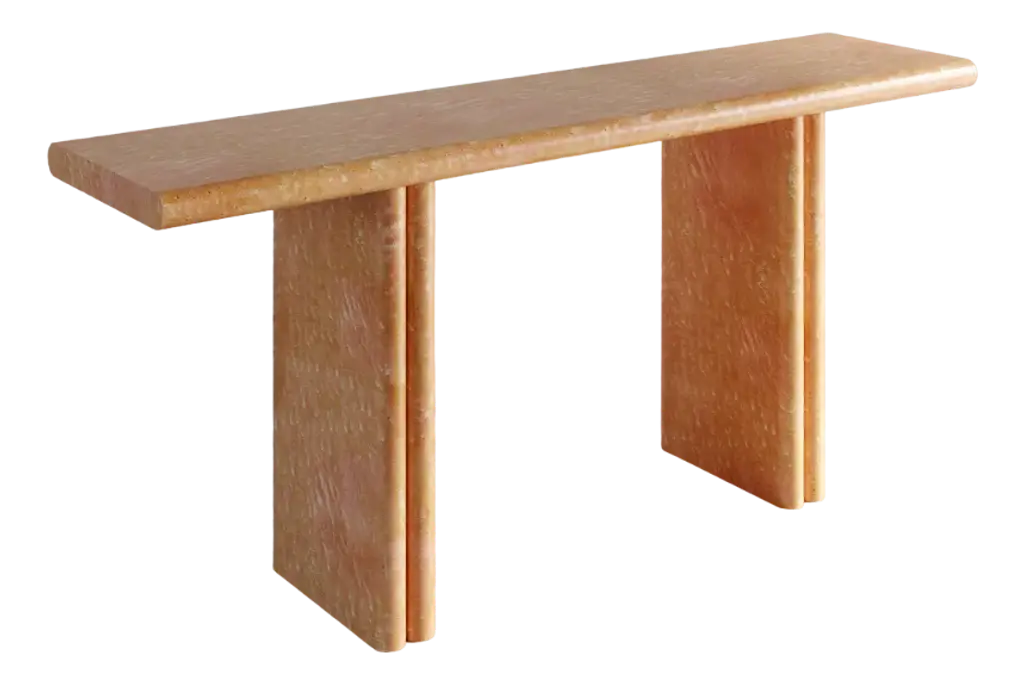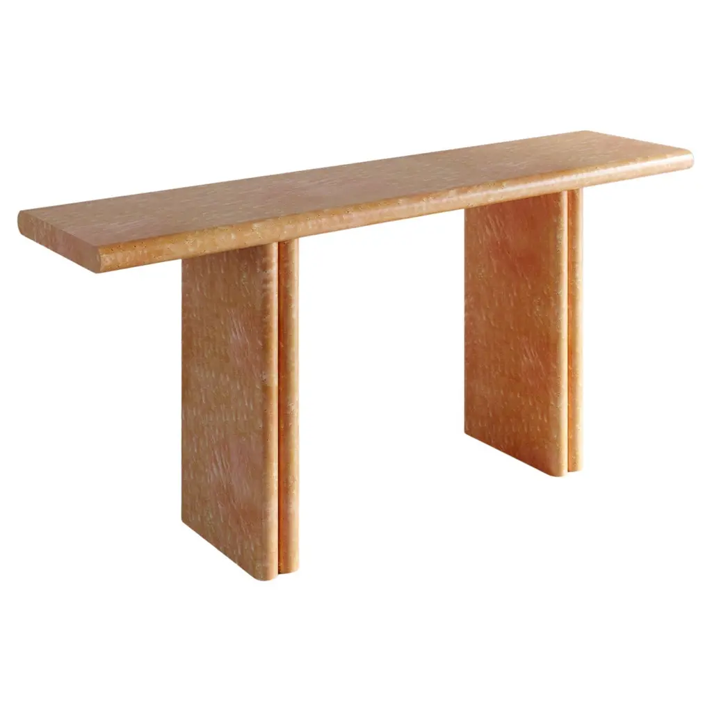 Jacques Apricot Orange Bird's Eye Maple Console Table by Fred and JuulDimensions: D 40 x W 160 x H 80 cm.Materials: Bird's eye maple veneer on MDF.Available in different color options. Please contact us.Fred&Juul, short for Federico Minarelli and Julie Janssen, are two architects who decided to work as architects isn’t for them. It was when designing custom furniture for their clients and developing it with the amazingly skilled local artisans that they truly found joy in their work. So, in 2012 they decided to focus solely on that and launched their first lighting and furniture collection. With the exception of the renovation of the old Tuscan farmhouse that would become their home and studio, a labor of sorrow, but mostly love (see the result on the press page!).What sets them apart is how they see and use their materials of choice: bronze, brass, wood, and stone. Their designs value the inherent nature of these materials and how they are meticulously crafted, like the grainy, clouded surface of their Raffaele light in sand-cast brass or the juxtaposed Oak grains in the marquetry of their Maurits table. Starring all these aspects in the story of a piece is what makes it unique and last.Over the years they have increasingly worked with interior designers on custom pieces for high-end projects all over the world, thanks to their attention to detail, refined aesthetic sense and collaboration with the best highly specialized craftsmen Tuscany has to offer.