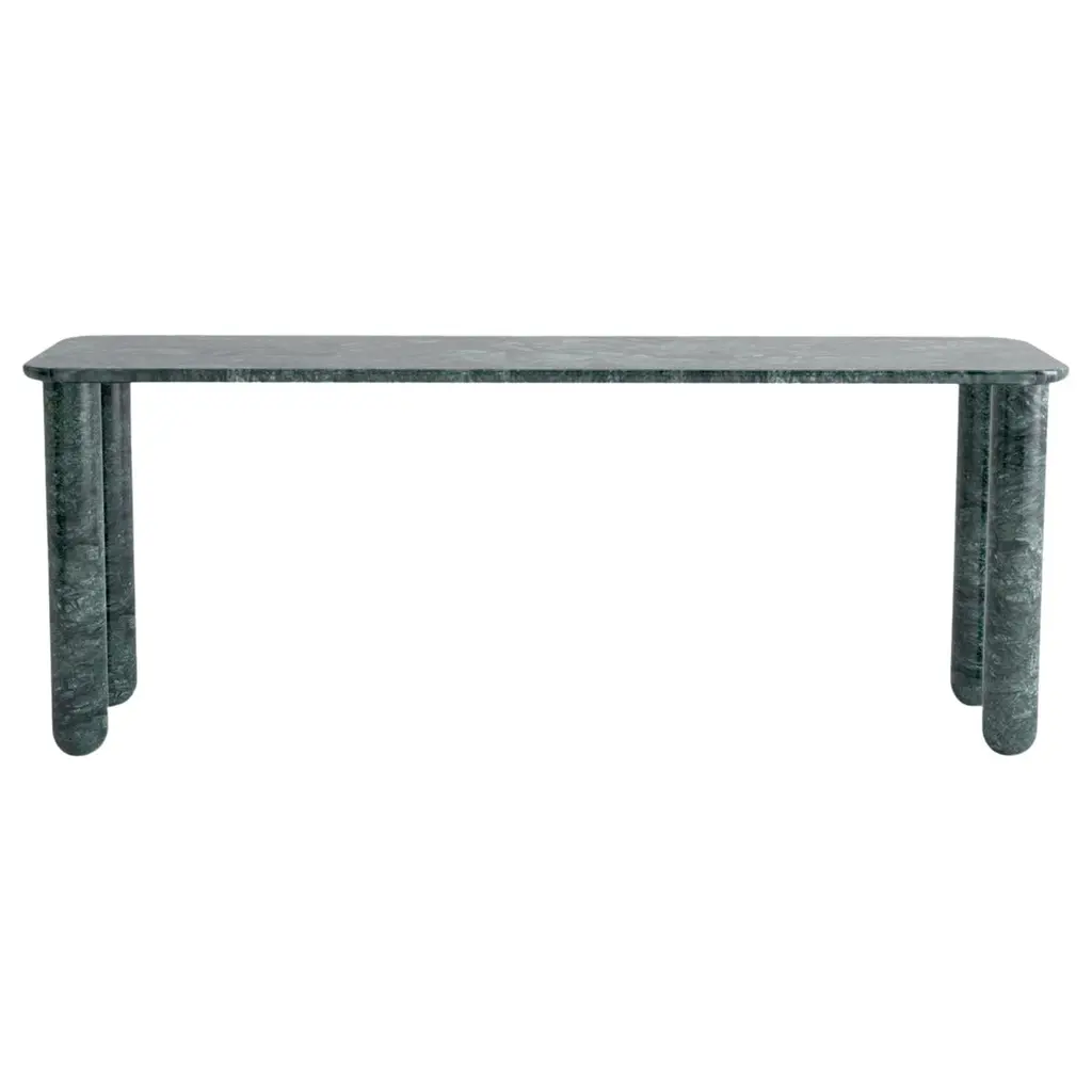 Jacques Pine Green Bird's Eye Maple Console Table by Fred and JuulDimensions: D 40 x W 160 x H 80 cm.Materials: Bird's eye maple veneer on MDF.Available in different color options. Please contact us.Fred&Juul, short for Federico Minarelli and Julie Janssen, are two architects who decided to work as architects isn’t for them. It was when designing custom furniture for their clients and developing it with the amazingly skilled local artisans that they truly found joy in their work. So, in 2012 they decided to focus solely on that and launched their first lighting and furniture collection. With the exception of the renovation of the old Tuscan farmhouse that would become their home and studio, a labor of sorrow, but mostly love (see the result on the press page!).What sets them apart is how they see and use their materials of choice: bronze, brass, wood, and stone. Their designs value the inherent nature of these materials and how they are meticulously crafted, like the grainy, clouded surface of their Raffaele light in sand-cast brass or the juxtaposed Oak grains in the marquetry of their Maurits table. Starring all these aspects in the story of a piece is what makes it unique and last.Over the years they have increasingly worked with interior designers on custom pieces for high-end projects all over the world, thanks to their attention to detail, refined aesthetic sense and collaboration with the best highly specialized craftsmen Tuscany has to offer.