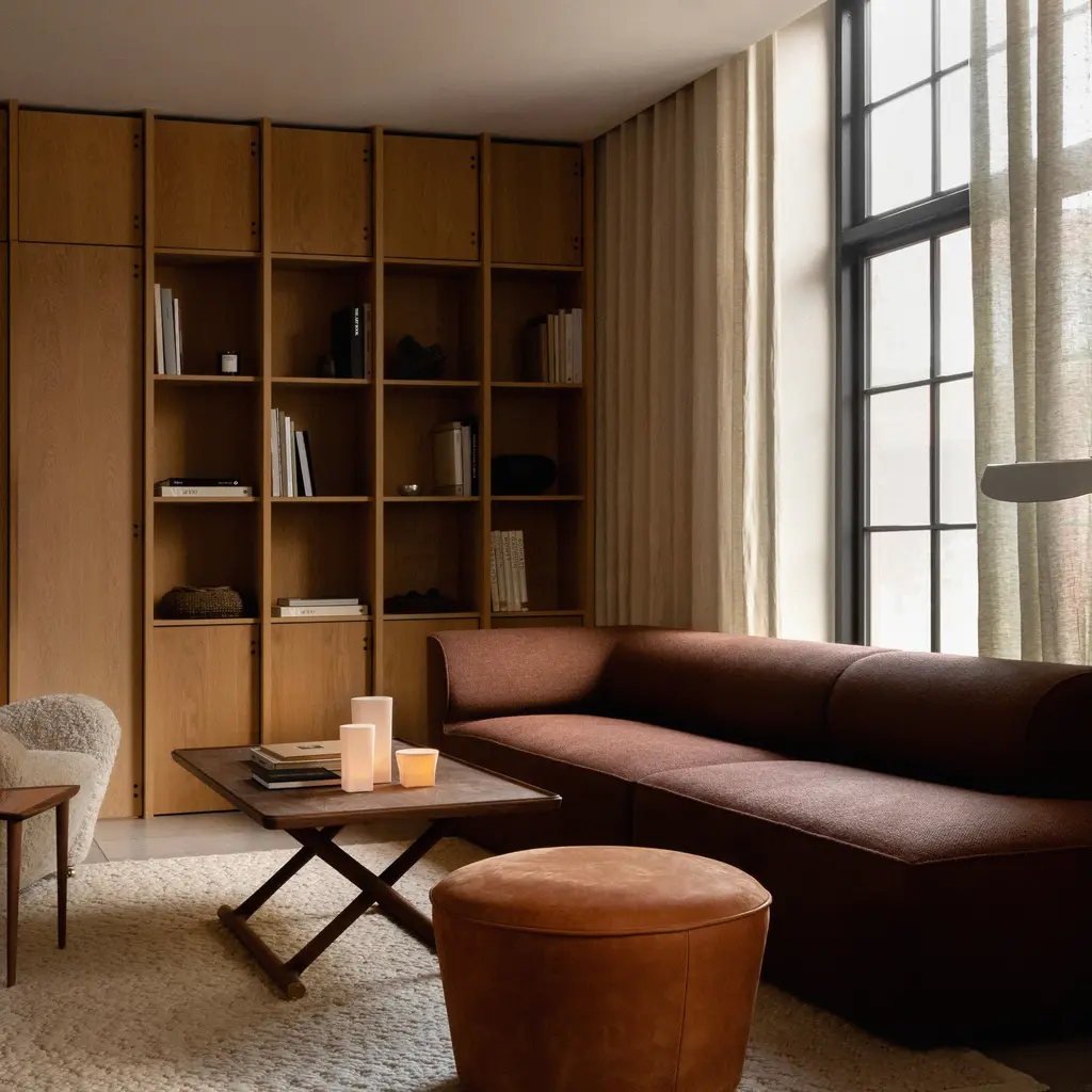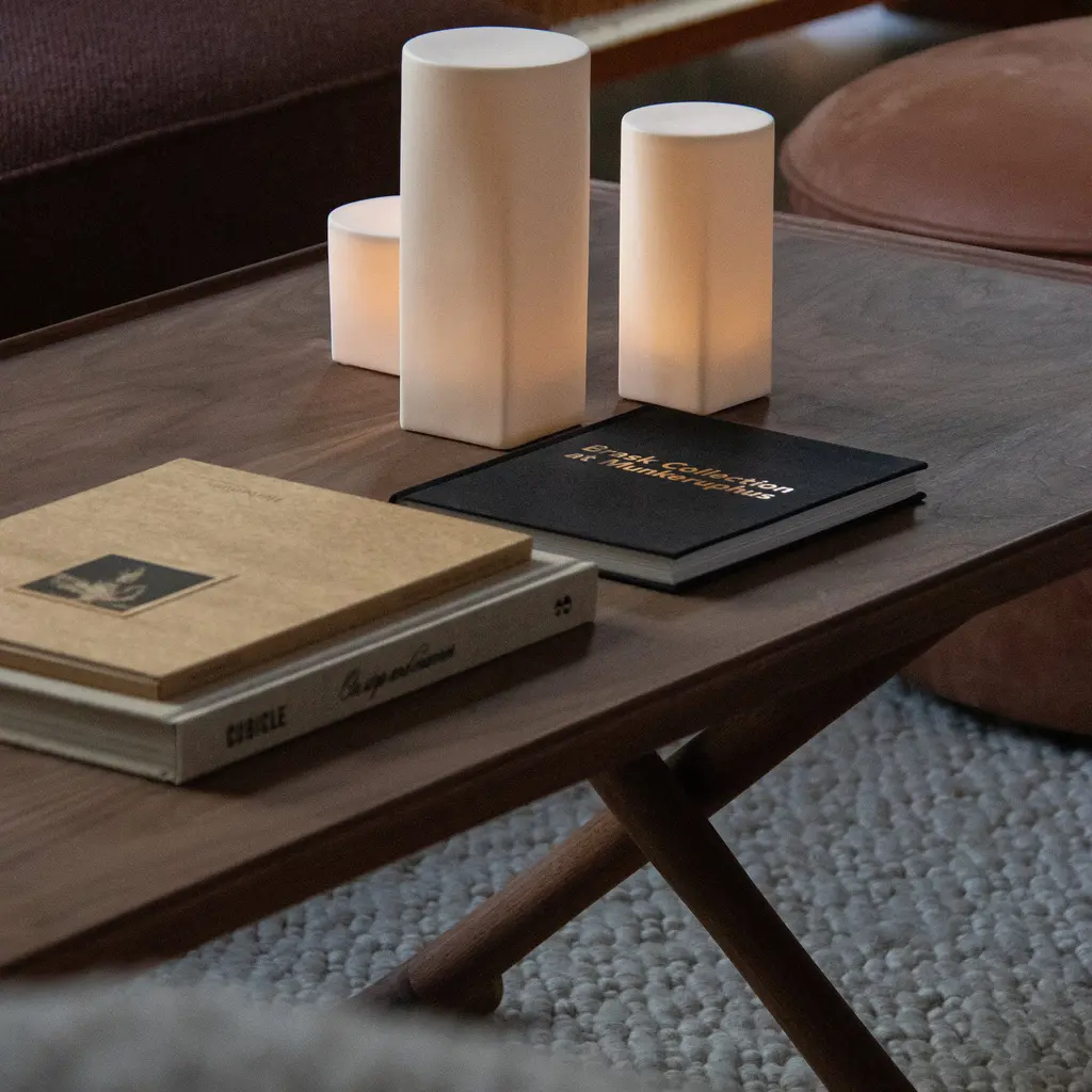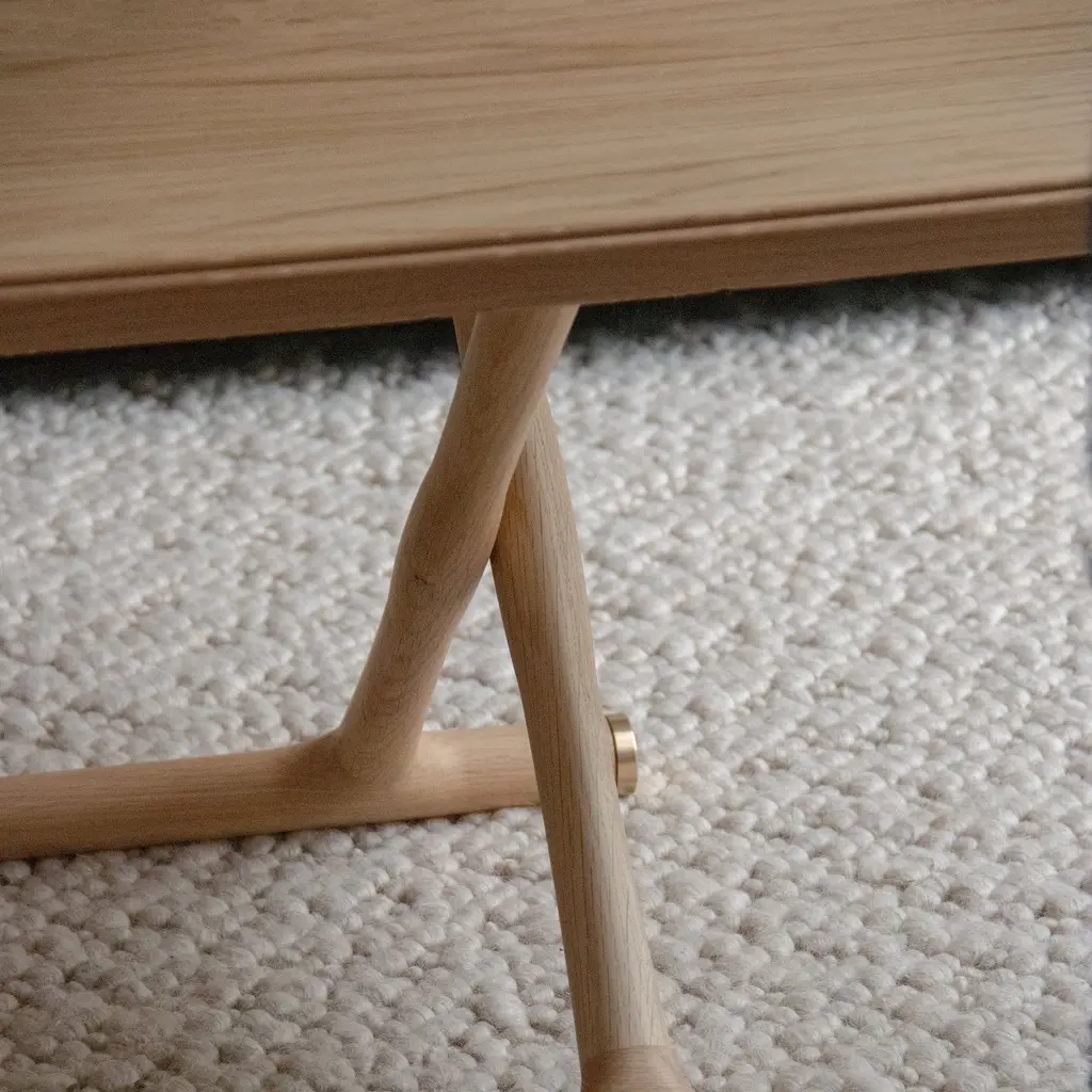 Inspired by the folding stools and beds found in Tutankhamen's Egyptian tomb, Mogens Lassen’s 1941 collapsible lounge table proves its enduring appeal. Jäger is shaped from oiled oak or walnut, with brass fittings that detail this iconic piece of Danish design—down to the matching brass plaque engraved with a unique serial number.