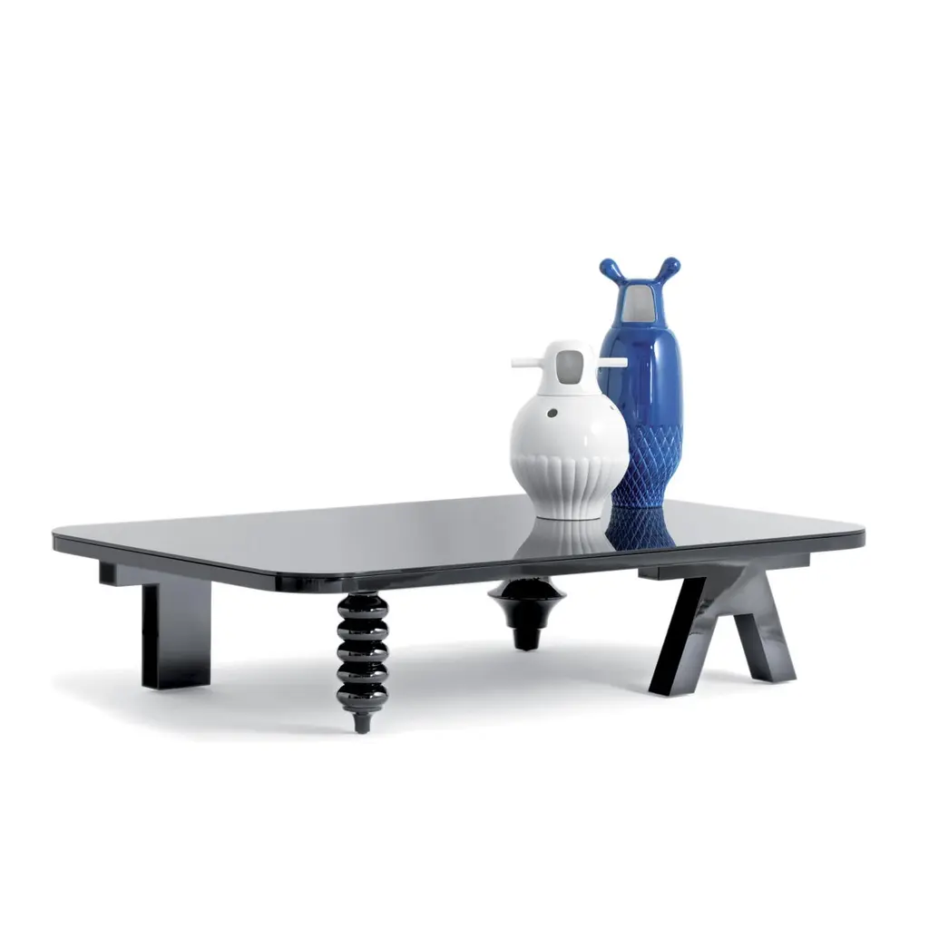 Low table designed by Jaime Hayon.Manufactured by BD Barcelona Design.MDF base and legs in turned solid alder wood, lacquered in black gloss Meaasures: 100 x 160 x 35 cm.