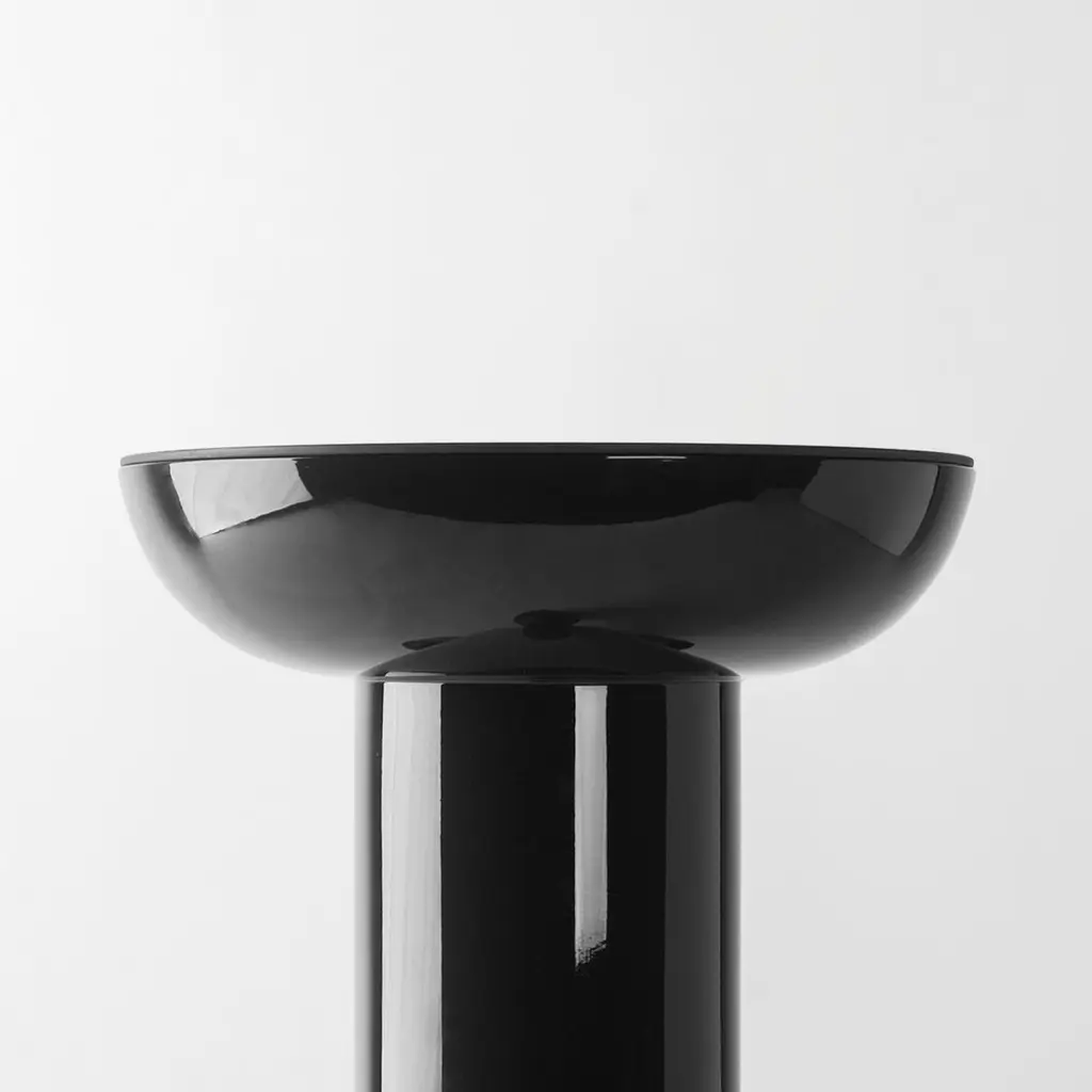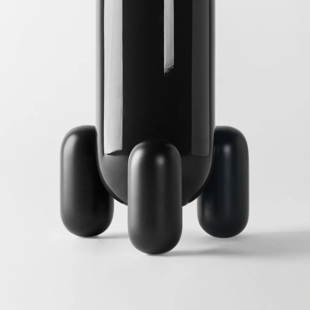 Dark Grey Explorer #03 tableDesign by Jaime Hayon, 2019Manufactured by BD Barcelona.Laquered fibreglass body. Solid turned wooden legs and lacquered. Painted glass table top.Measures: 40 Ø x 50 cm- Glass: RAL 7021- Body: RAL 7021 gloss- Legs: RAL 7021 mate.