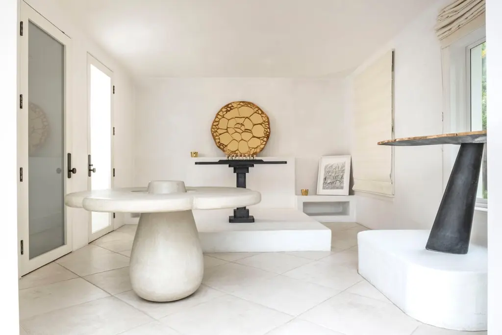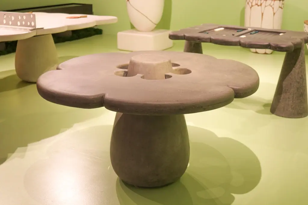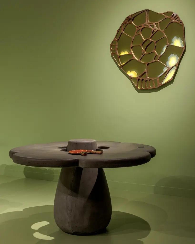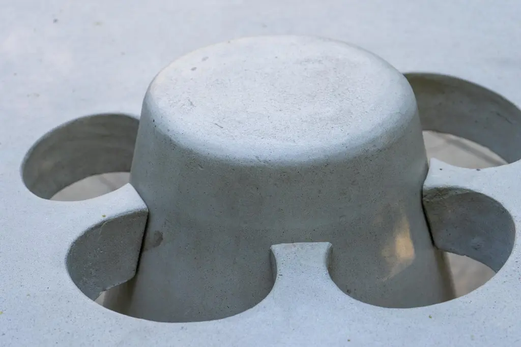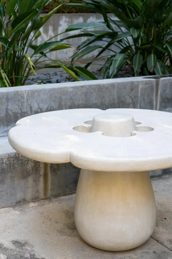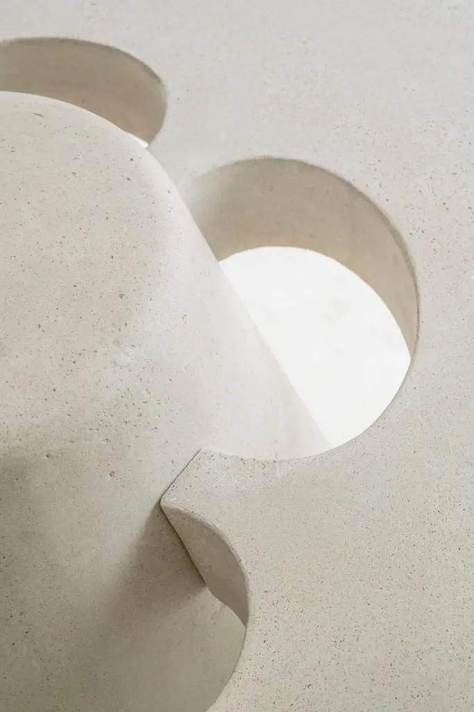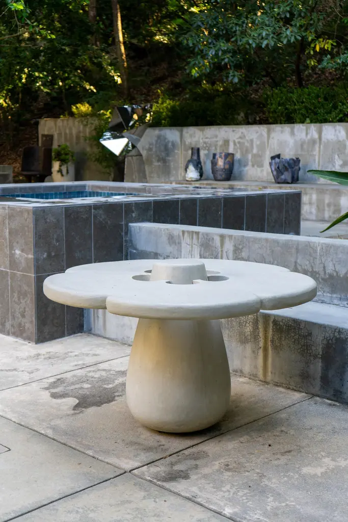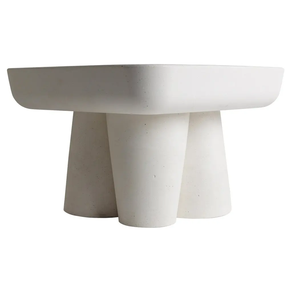 The Blueberry Table is a fun, welcoming, table which hides the intricacies of the technology involved. In this design, James has returned to making a table with only concrete. Developing the signature gravity joint further, portions of the joint have been removed to showcase the beauty in the construction. The intricate five-point gravity joint is extremely difficult to manufacture, and is demonstrative of the level of skill required to complete such a feat. For years, James has strived to go thinner with each piece, to push the boundaries of what is achievable with concrete. Taking a different approach with the Blueberry Table, the idea was to create a soft, pillowy, buttery smooth piece of concrete furniture. All the edges are rounded to give an overall appearance of softness. Each of the "petals" are organic, hand drawn, mimicking the pattern of a flower or center of a blueberry. Limited to series of 25 with Certificate of Authenticity. Custom color and sizing available. Weight of the table is 475 lbs.