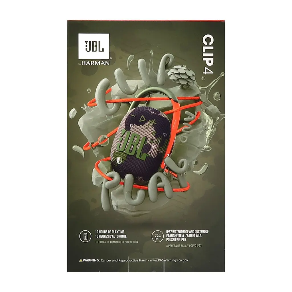 JBL CLIP 4 PORTABLE BLUETOOTH WATERPROOF SPEAKER (SQUAD) + INNOVEXEE WATERPROOF NEOPRENE MEDIUM POUCHJBL Clip 4 Portable Bluetooth Waterproof Speaker (Squad)Bring the party nearly anywhere you go with the squad JBL Clip 4 Portable Bluetooth Speaker. With a built-in carabiner and rechargeable battery that lasts up to 10 hours, you can clip the speaker to your bag, belt loop or whatever else is handy and stream music, podcasts, and more wirelessly via Bluetooth as you travel. Its IP67 rating means it's waterproof and dustproof, so it's safe at the beach or poolside, even if it rains or gets splashed. It outputs up to 5W from its 1.5" driver.Portable DesignThe Clip 4 features a portable design with a built-in carabiner, so you can clip it to your belt, bag strap, or buckle, and take it nearly anywhere. It's engineered to deliver rich audio and punchy bass, despite its compact size.IP67 Waterproof and DustproofThe Clip 4 is IP67 rated to be waterproof and dustproof, so you can bring it to the pool, park or wherever.Bluetooth Wireless StreamingStream music wirelessly from your phone, tablet, or any other compatible Bluetooth-enabled device.Up to 10-Hour Battery LifeWith up to 10 hours of battery life on a single charge, you can play music without worrying about recharging.Features:Bluetooth Wireless StreamingBuilt-In 10-Hour Rechargeable Battery || 3-hour charge timeUSB Type-C ChargingIP67 Rated, Waterproof and DustproofIntegrated CarabinerSupports Google Fast PairOval shape designed to fit easily into your handIn the box:JBL Clip 4 Portable Bluetooth Speaker (Squad)USB Type-C Charging CableInnovexee Protective Neoprene Pouch for DSLR Camera LensSize: 4" (diameter) x 6" (height)Made from thick neoprene, this Pouch offers superior protection for your camera lenses and Speaker. The neoprene is waterproof, helping to shield your lens from moisture, dust and other environmental elements. It also offers shock absorption, providing reliable defense against accidental bumps, drops and scratches.The waterproof neoprene material not only helps protect your Speaker from rain and moisture but also guards against dust and dirt, keeping your gear safe in various weather conditions.The pouch comes with a zippered closure that ensures your Speaker stays safely stored inside. Its compact design allows for easy storage in bags or backpacks, without taking up too much space.This Bundle from Teds Electronics includes:JBL Clip 4 Portable Bluetooth Waterproof Speaker (Squad)Innovexee Waterproof Neoprene Medium PouchMPN: CLIP4-SQD-1KUPC:050036378314