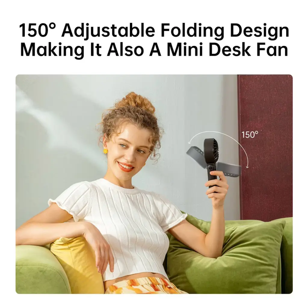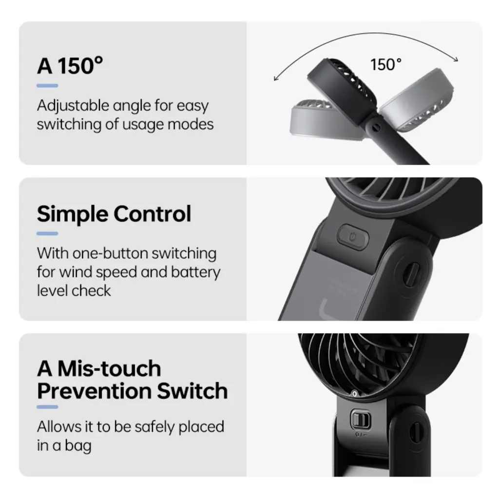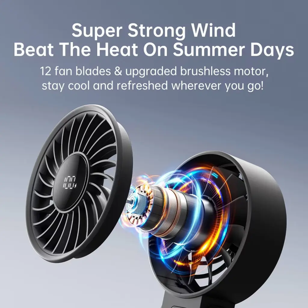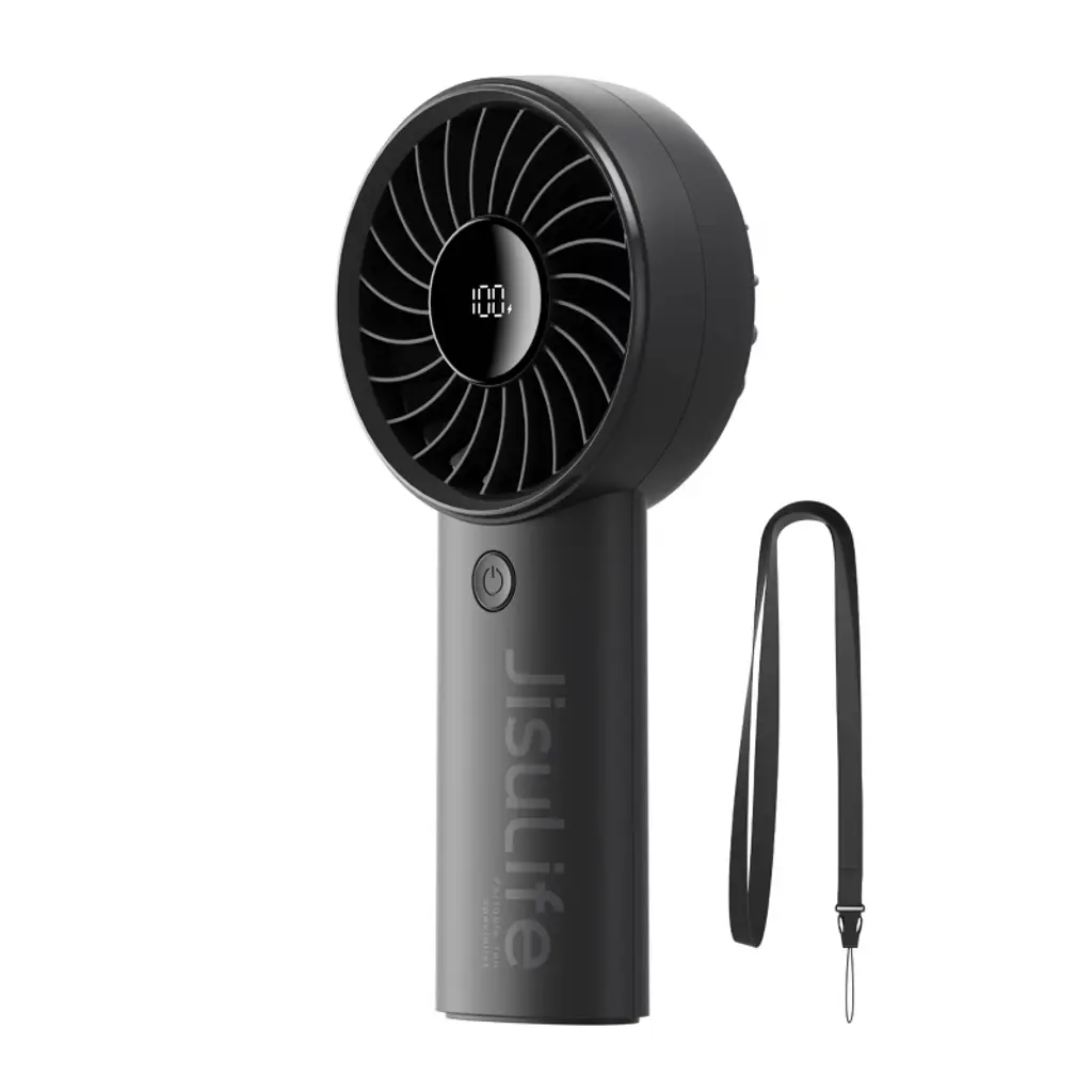 Experience personal cooling redefined with the JISULIFE Handheld Fan Life7. Engineered for both indoor and outdoor use, this fan’s advanced 12-blade brushless motor produces up to 9 m/s of airflow across five speed levels, ensuring rapid relief even on the hottest days.Its high-capacity 3600 mAh lithium-ion battery supports up to 13 hours of operation at low speed, perfect for long commutes, festivals, or uninterrupted office comfort. The bright, front-facing LED display keeps you informed of both wind speed and remaining battery life, so you never run out of power unexpectedly.Designed for ultimate versatility, the Life7 folds at 150° to transform from a handheld fan into a stable desktop cooler or a wearable neck fan with the included lanyard. Its compact size and lightweight construction make it an essential companion for travel, outdoor adventures, or quick trips around town.When it’s time to recharge, simply plug in via USB-C and enjoy a full charge in under 3.5 hours, so you’re always ready for your next outing. For added peace of mind, the built-in safety lock switch prevents the fan from turning on accidentally while stored, protecting both battery life and your belongings.Whether you’re packing light for a weekend getaway or seeking a powerful desk companion, the JISULIFE Handheld Fan Life7 delivers reliable, adjustable cooling wherever you go.