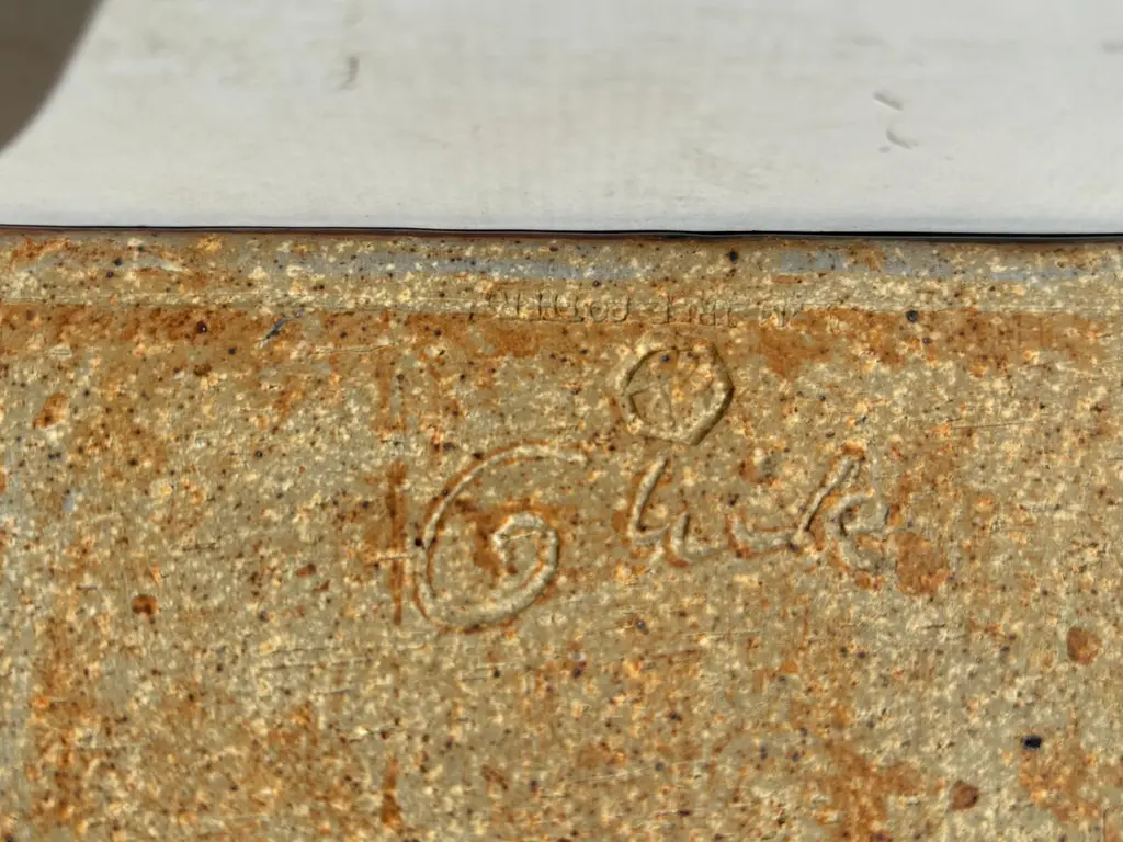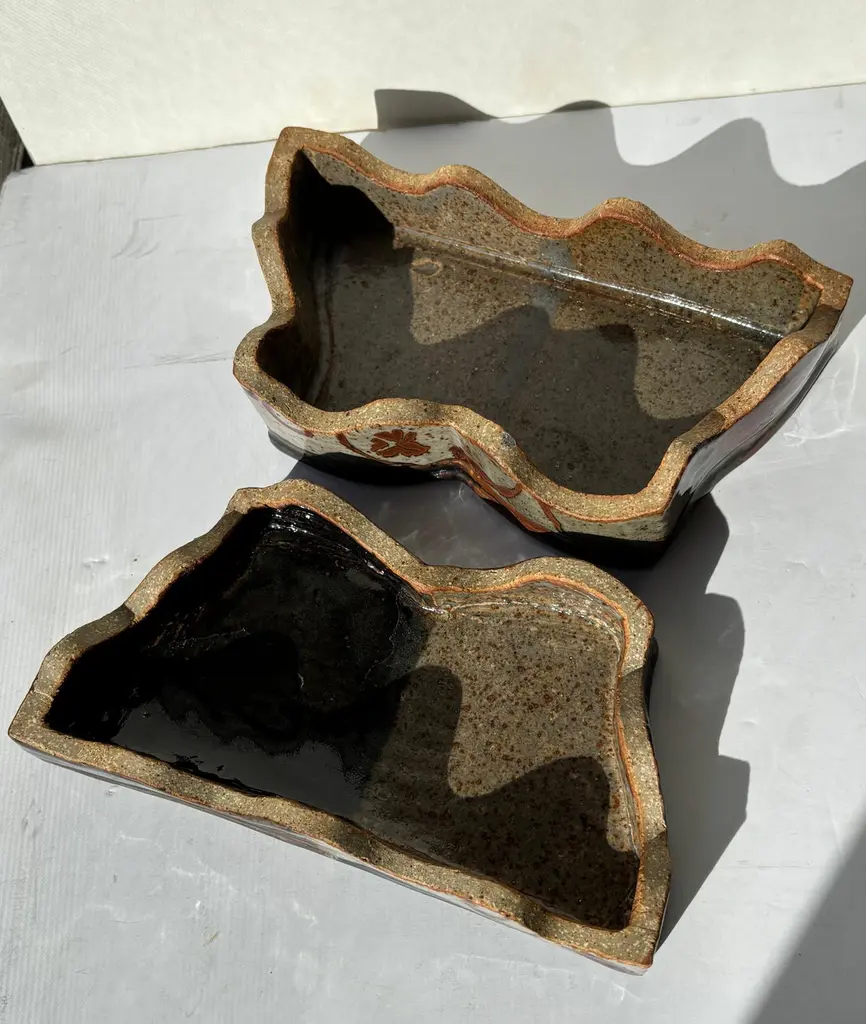 Beautiful box with waved design in stoneware / ceramic. Made by Plum Tree Potters, John Glick.