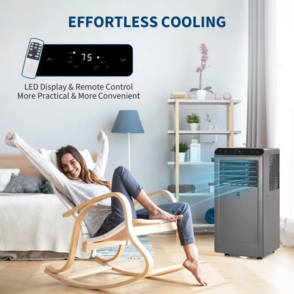 Jojoka 10000 Btu 3-in-1 Portable Air Conditioner With Led Display, Remote Control, 24-hour Timer, Sleep Mode, Cools Rooms Up To 450 Sq. Ft, Gray