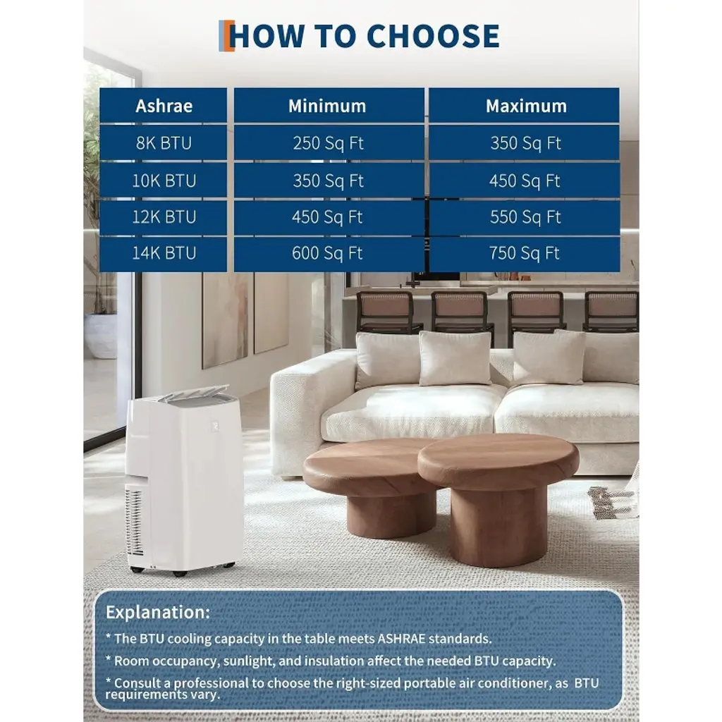 Jojoka 14,000 Btu Portable Air Conditioner With Remote, Quiet Operation & 6 Cooling Modes - Cools Rooms Up To 750 Sq Ft, White-1
