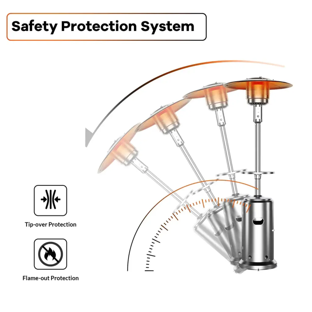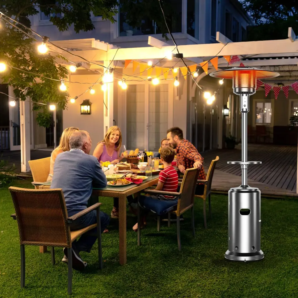 Transform your patio or garden with this versatile propane outdoor heater. Engineered for efficiency and durability, it delivers substantial heat to keep your guests cozy during outdoor events. The round table design maximizes convenience, providing extra surface space, while the push-button ignition makes operation simple. Built-in wheels and enhanced tip-over protection offer a seamless blend of style, mobility, and safety for all your open-air activities.