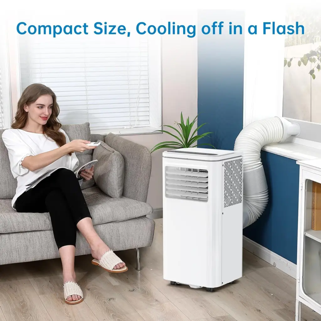 Stay comfortable all year with this 8,000 BTU portable air conditioner, designed to cool rooms up to 250 square feet. Its 3-in-1 functionality combines cooling, dehumidifying, and fan modes to adapt to different seasons and preferences. With a daily dehumidification capacity of up to 90 pints, this AC unit helps maintain healthy humidity levels, while dual fan speeds and swing air vents ensure even airflow. The quiet sleep mode operates at just around 50 decibels, making it ideal for bedrooms, nurseries, or home offices. Set your comfort on a schedule with the 24-hour programmable timer, and enjoy low-maintenance operation thanks to the auto-evaporation system, which reduces the need for manual drainage. The unit is easy to set up with the included window installation kit, compatible with both vertical and horizontal sliding windows. Built-in casters and side handles allow you to move it between rooms with ease¡ªno permanent installation required.