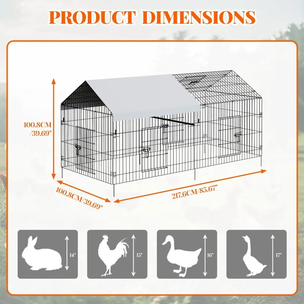 Jojoka Pet Metal Chicken Coop, Large Walk-in Hen House With Waterproof Cover, Portable Chicken Run For Ducks, Rabbits, Small Animals, 85.67in