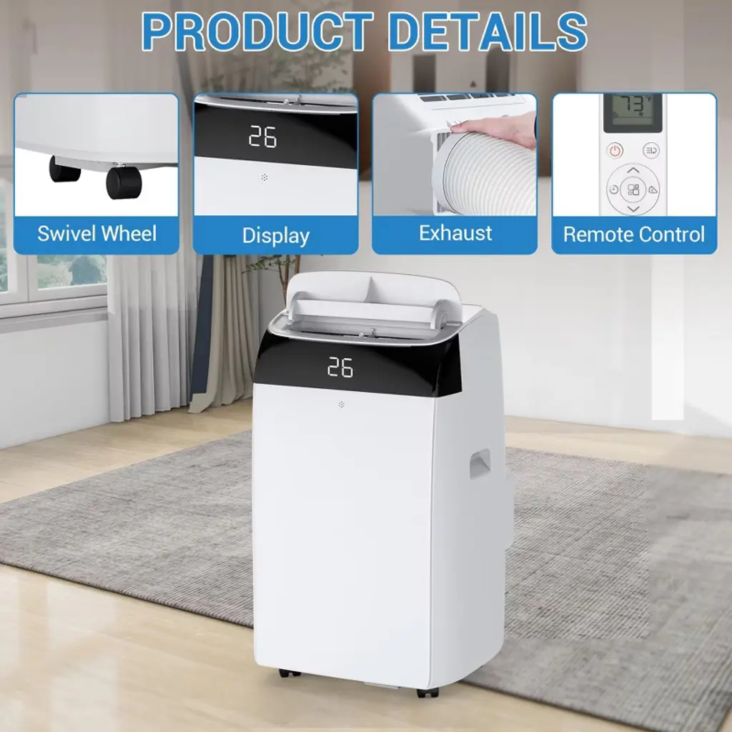 Jojoka Ultra-quiet 12000 Btu Portable Air Conditioner For Bedroom, 3-in-1 Ac Unit With Remote, 24h Timer, Sleep Mode, 450 Sq.ft Coverage, White
