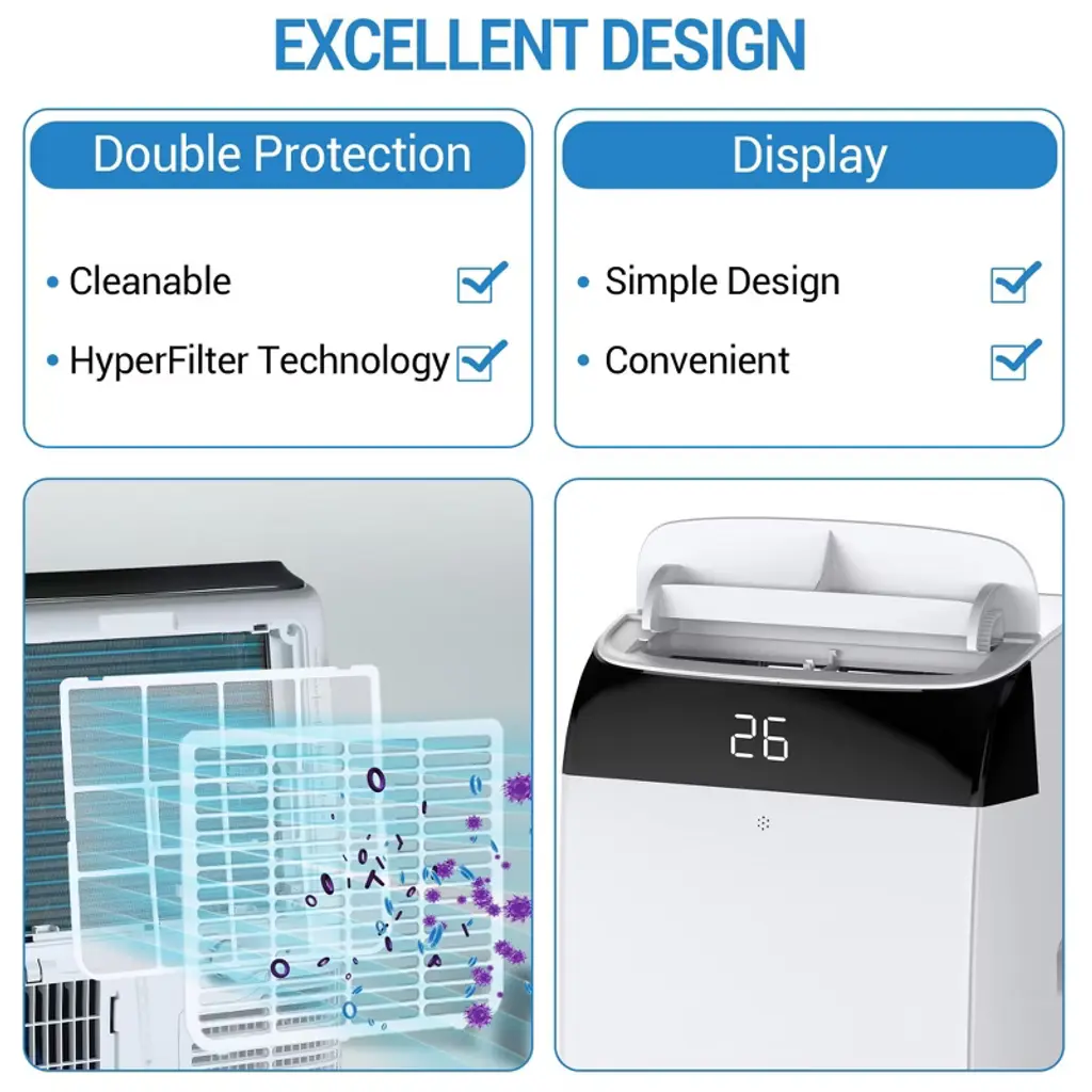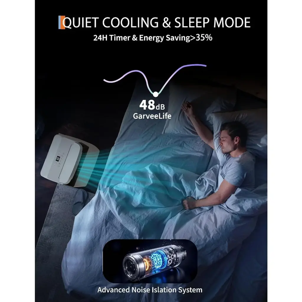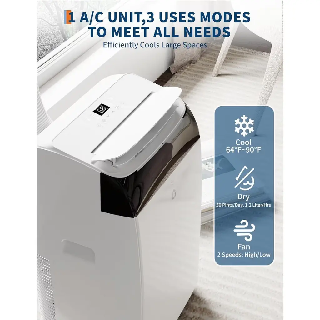 Enjoy cool, quiet comfort with this whisper-quiet 12000 BTU portable air conditioner. Designed with bedroom and nighttime use in mind, it features a dedicated sleep mode, remote control, and ultra-quiet 48 dB operation. Whether cooling, dehumidifying, or simply circulating air, this 3-in-1 unit offers efficient climate control for spaces up to 550 sq. ft.