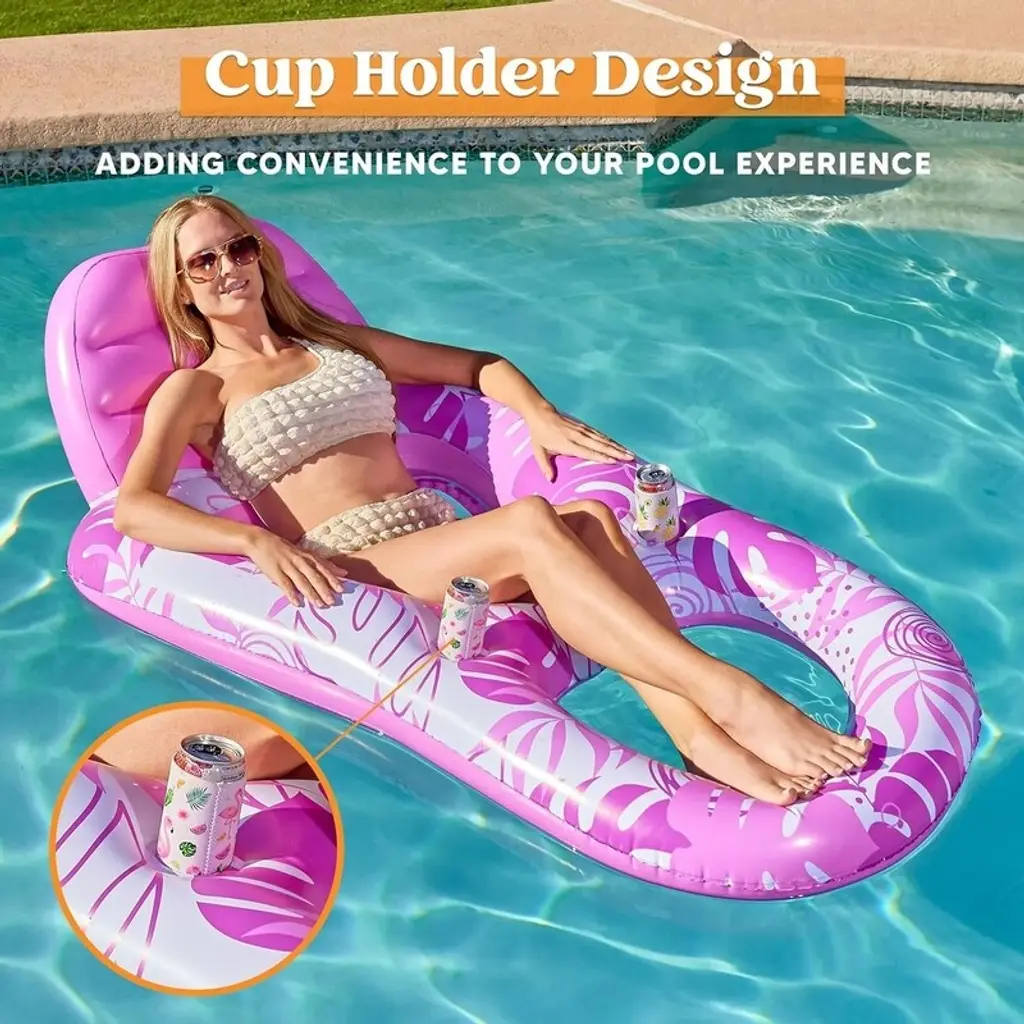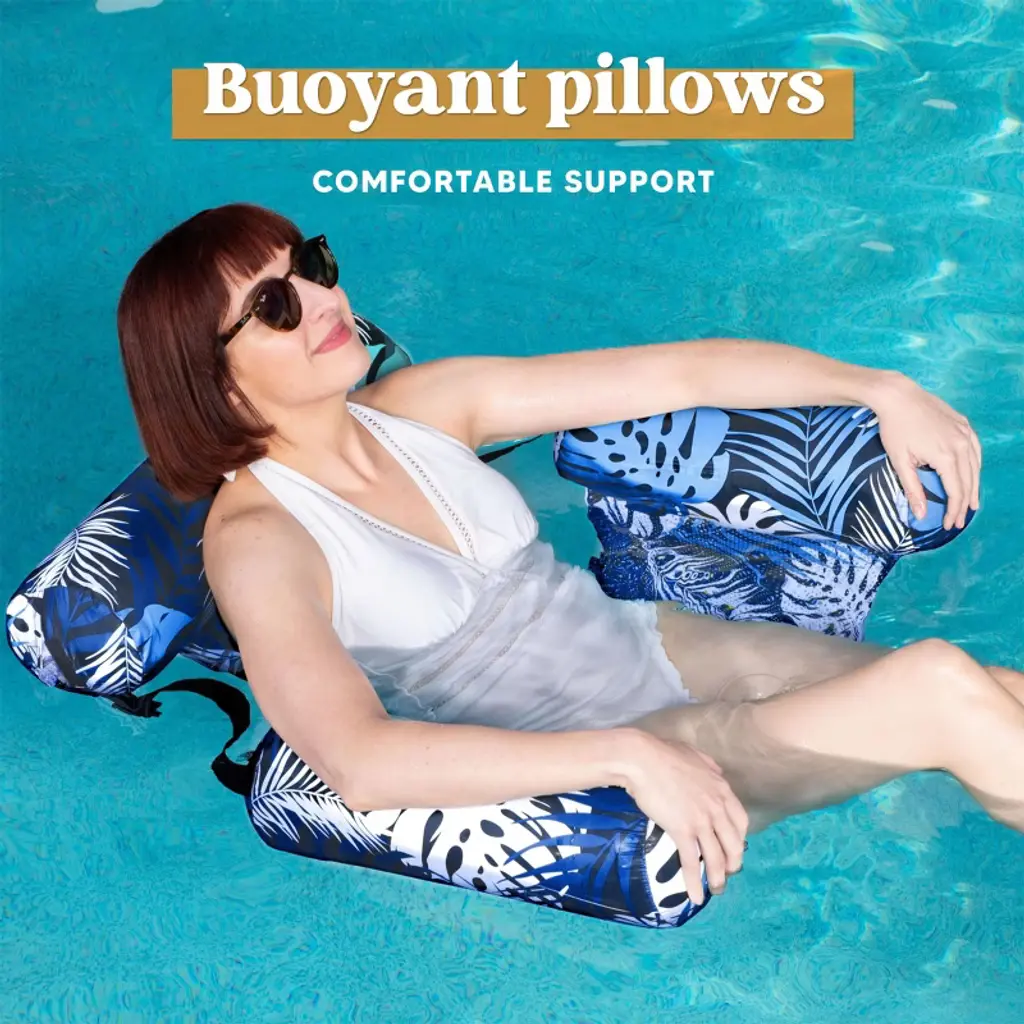 Joyfy 2 Packs Inflatable Pool Chairs, Inflatable Lounge Pool Float, Tropical Hammock Chair For Adult Summer Party Water Beach Fun - Pink, Blue