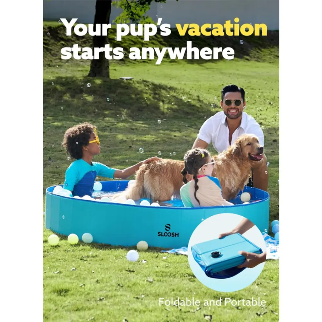 Our 63" x 12" pet pool is crafted from high-density fiberboard and premium PVC, ensuring exceptional sturdiness and long-lasting durability. This combination of materials makes the pool resistant to wear and tear, even with frequent use. Additionally, the non-slip bottom provides added security, preventing the pool from sliding around and ensuring your pet's safety while they play and splash around. It can be conveniently folded and packed away, making it perfect for home use, travel, or camping trips with your pet. Whether you're at the beach, on a road trip, or at home, you can take this pool along wherever you go. It can be used as a pet pool, providing your furry friend with a refreshing place to cool off in the summer. It can also serve as a kiddie pool, ball pit, or even a whelping box for dogs. Its versatility makes it suitable for both indoor and outdoor use, offering hours of fun for pets and children alike. Whether you’re at home, in the backyard, or on an adventure, this pool is the perfect way to provide entertainment and relaxation for your family and pets.