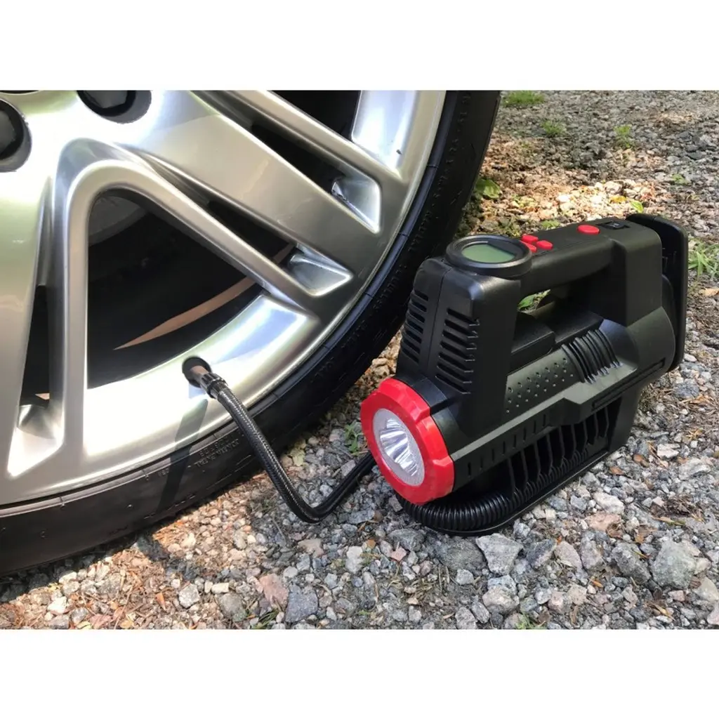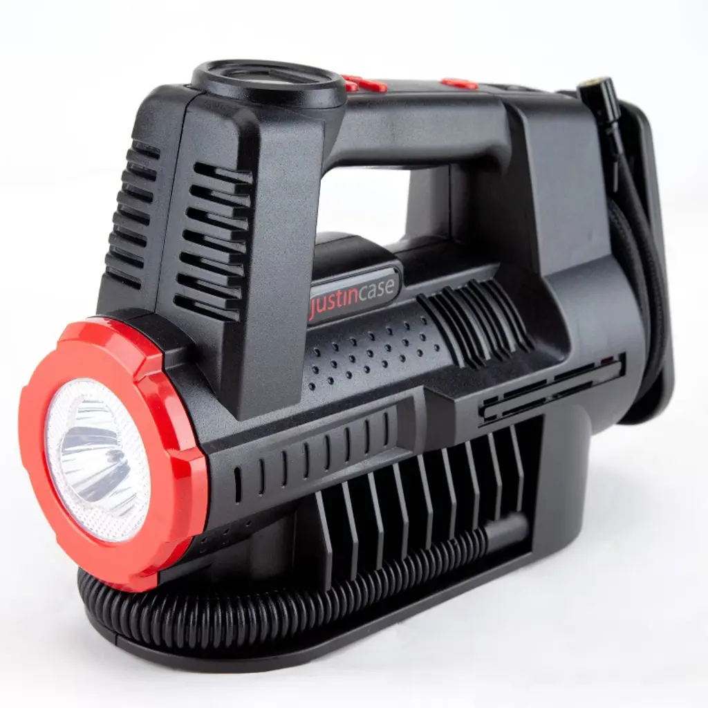 Dual Inflating Modes:Versatility is the hallmark of this 12 Volt Dual Function Tire Inflator from Justin Case. Equipped with dual inflating modes, it caters to the specific needs of both your vehicle tires and your inflatables. The high-pressure, low-volume mode is perfect for efficiently inflating car tires, ensuring they reach the optimal pressure for safety and performance. On the other hand, the high-volume, low-pressure mode is designed for your inflatables – from rafts and air mattresses to toys, it handles them all with ease.365 Days of Roadside Assistance:We understand that life happens, and sometimes you find yourself in unexpected situations. That's why, with the purchase of our 12 Volt Dual Function Tire Inflator, you'll enjoy 365 days of complimentary roadside assistance. No matter where you are, we've got your back. Whether it's a flat tire, a low-pressure inflatable, or any other inflation need, our dedicated team is just a call away, ready to assist you and get you back on the road swiftly.2-Year Satisfaction Warranty:Confidence in your purchase is paramount, which is why we stand behind our product with a 2-year satisfaction warranty. We believe in the durability and performance of our tire inflator, and this warranty is our promise to you. If you encounter any issues within the first two years of ownership, we'll make it right, ensuring your satisfaction and peace of mind.Digital Display with Auto Shut-Off Feature:Precision and ease of use are at your fingertips with the digital display and auto shut-off feature. The clear digital display provides real-time information about the current pressure, allowing you to monitor the inflation process with accuracy. The auto shut-off feature ensures that you won't overinflate your tires or inflatables, providing peace of mind and preventing potential damage.150 Max PSI:Powerful performance is non-negotiable when it comes to tire inflators. Our 12 Volt Dual Function Tire Inflator boasts a maximum pressure of 150 PSI, providing more than enough force to handle even the toughest inflation tasks. Whether you drive a compact car, an SUV, or need to inflate large inflatables, this tire inflator is up to the challenge.6 Minutes to Inflate a Standard Tire:Time is of the essence, especially when you're on the go. Our tire inflator understands the value of your time, and that's why it takes just 6 minutes to inflate a standard tire. With efficiency at its core, this tire inflator ensures you spend less time waiting and more time enjoying the journey.