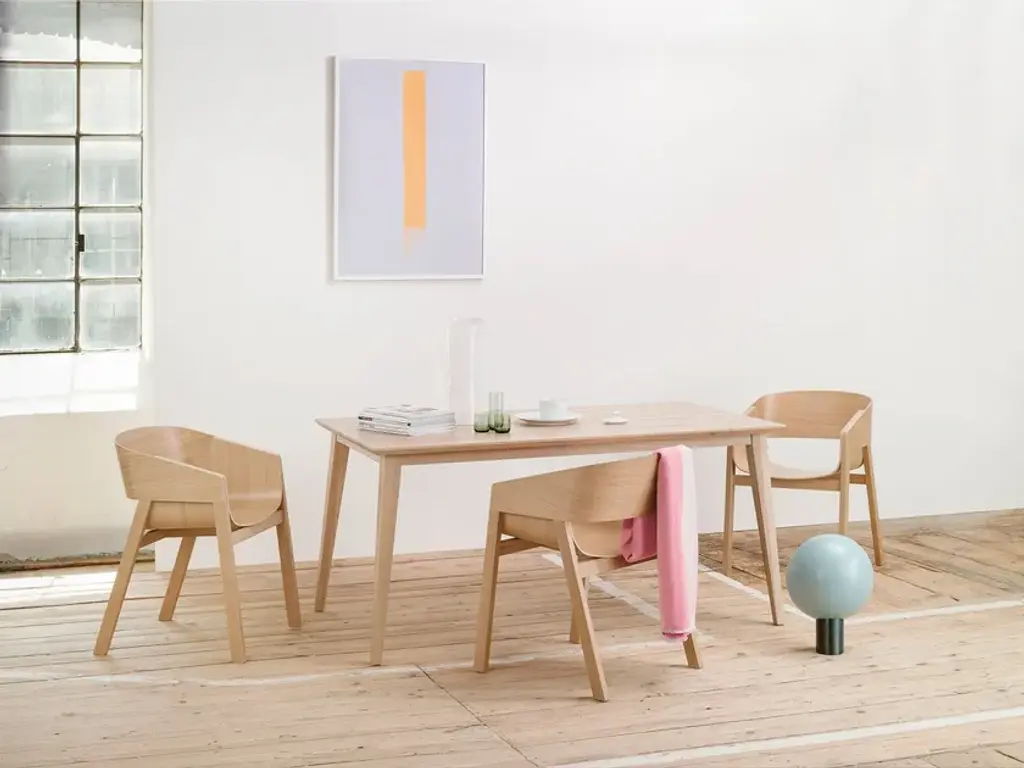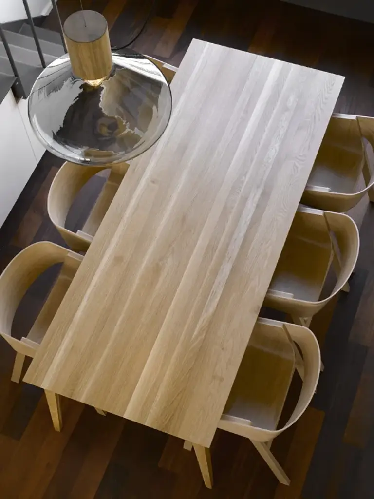 JYLLAND is a wooden table of Tables Collection by Ton A.S. This marked elegant table from the workshop of the designer Mads K. Johansen joins the typical attributes of the place where it was created. A significantly profiled countryside, compelling lines and the effect of natural shapes in perfect harmony. Yes, and if we talk about elegance of Jylland, we mean the elegance of the Danish countryside and vice versa. The generous plain of the table board, delimited with effective cliff edges, gives Jylland its irreplaceable character.